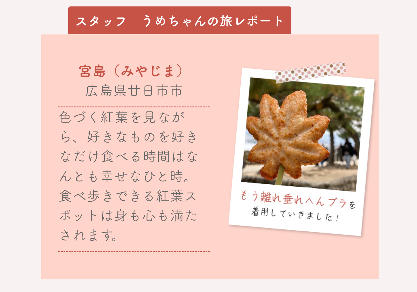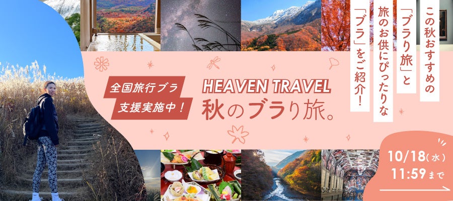 一人ひとりの女性の心と体に寄り添う「適正下着®」の開発から販売までを行う株式会社HEAVEN Japan(所在地:大阪府河内長野市、代表取締役:松田崇)は自社オンラインショップにて、この秋おすすめの旅行プランとそれぞれの旅のお供にぴったりなブラを提案する女性下着ブランド発の人気WEBコンテンツ『秋のブラり旅』を公開しました。