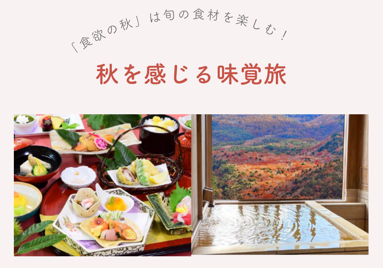 暑さが和らいで過ごしやすい季節の到来!そんな秋は「食欲の秋」と言われるように、栗やかぼちゃ、松茸、さつまいも、秋刀魚など、おいしい味覚がたくさんあります。秋の旅では、旬の食材を思う存分楽しみましょう。