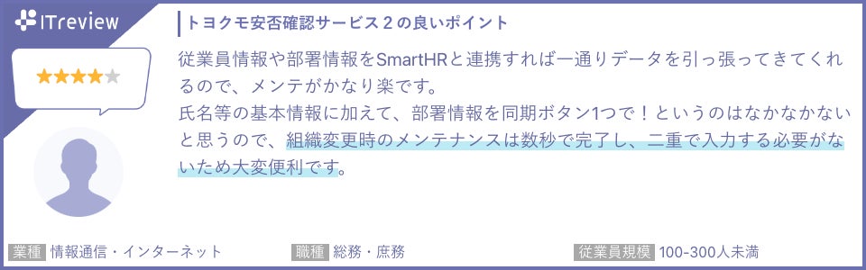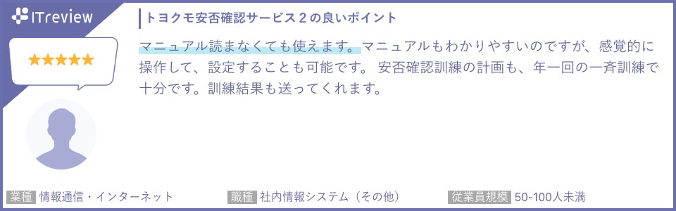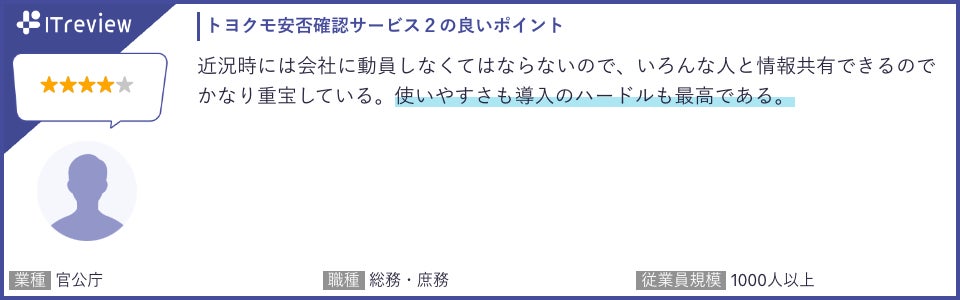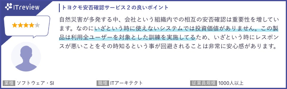 ITreviewでは、特に「操作の簡便さ」や「他システムとの連携性」、「訓練による安心感」について多くの評価をいただいています。