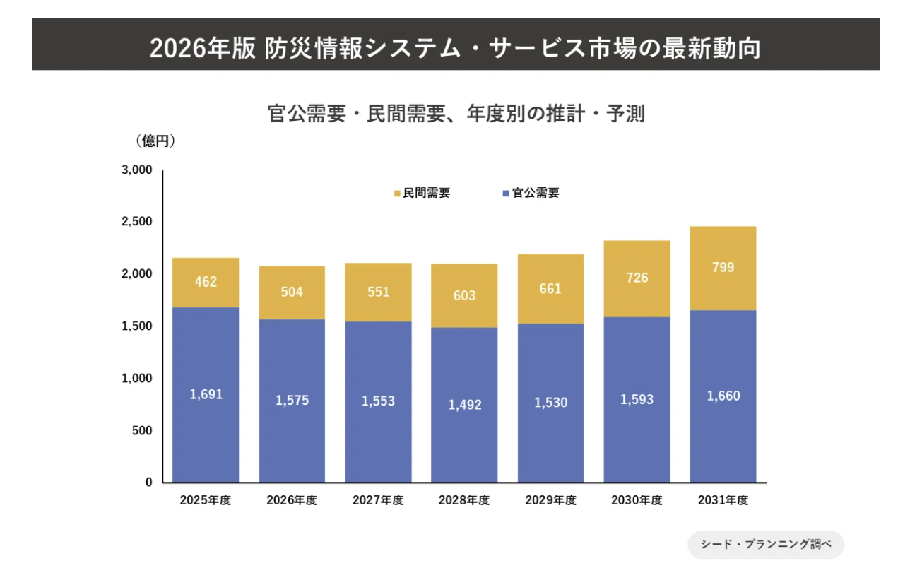 出典:シード・プランニング プレスリリース「防災情報システム・サービス市場の実態を調査防災情報システム・サービス市場の実態を調査」(2025年12月26日発表)