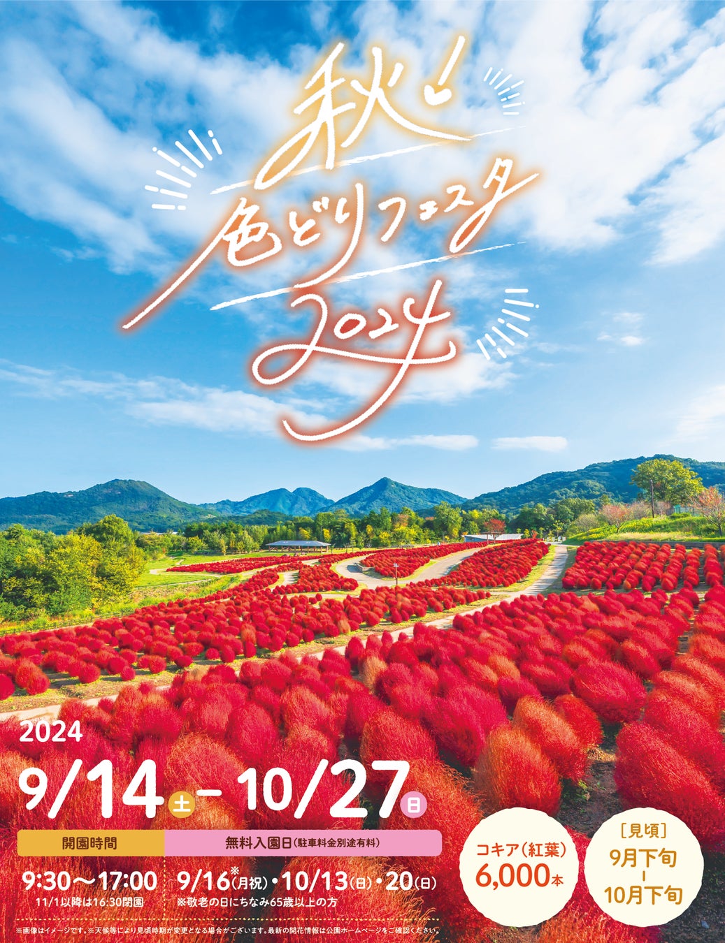 香川県仲多度郡まんのう町にある国営讃岐まんのう公園にて、9/14(土)~10/27(日)の期間、秋のお出かけや思い出作りにぴったりのイベントが盛りだくさんの「秋!色どりフェスタ2024」を開催します。
