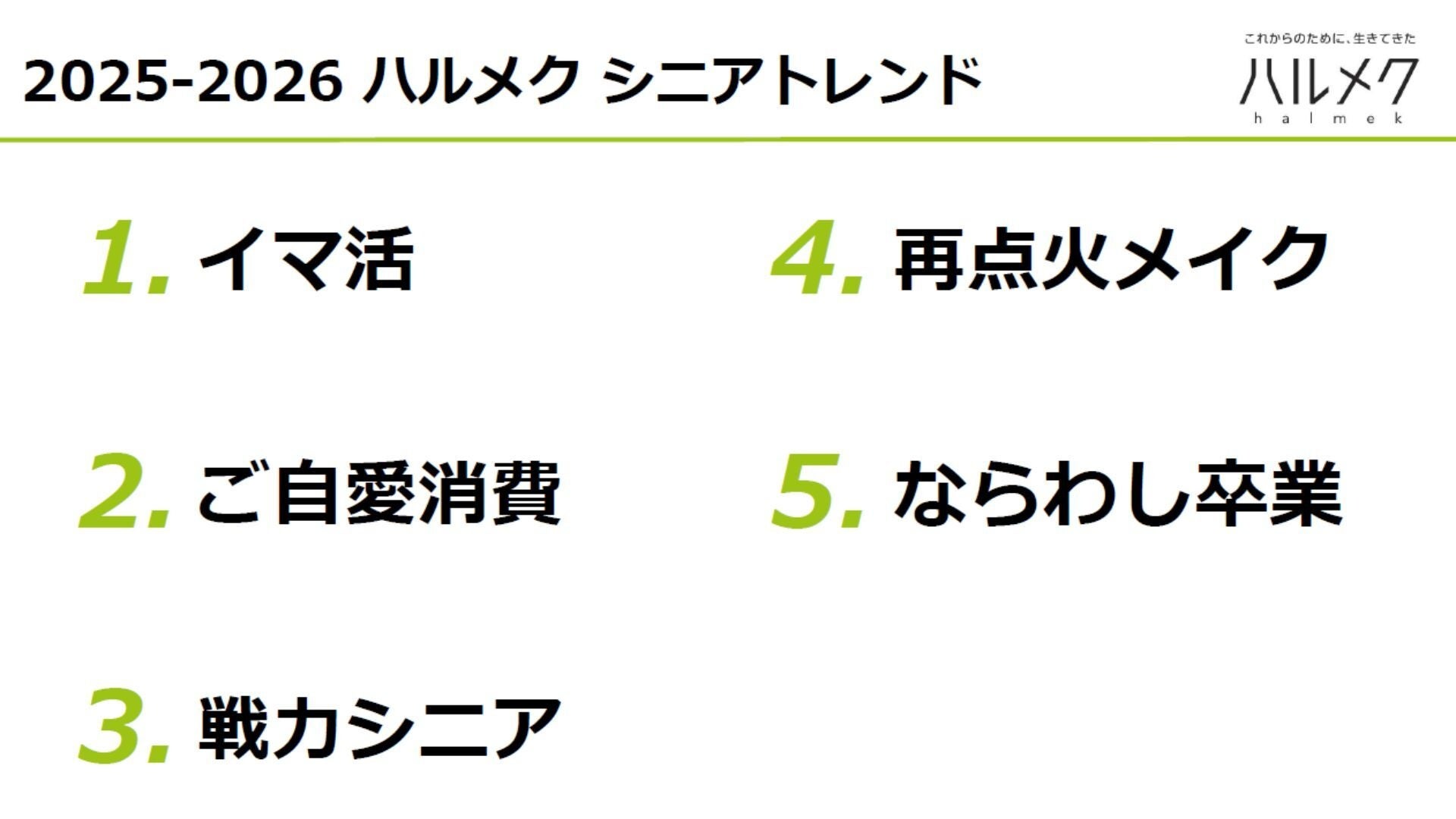 2025-2026 ハルメク シニアトレンドを発表!「イマ活」「ご自愛消費」「戦力シニア」「再点火メイク」「ならわし卒業」 お金も時間も(キャンセルせずに)自分に使うシニアが増加