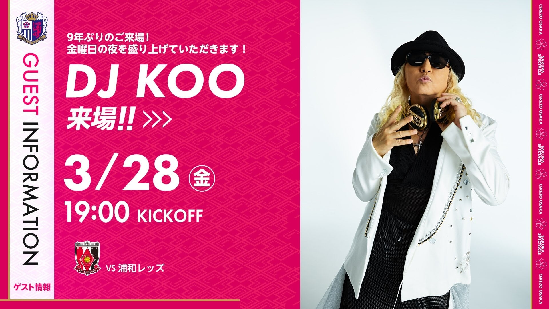 【セレッソ大阪】3/28(金)浦和戦 金 J をさらに盛り上げる!DJ KOO さん来場決定!