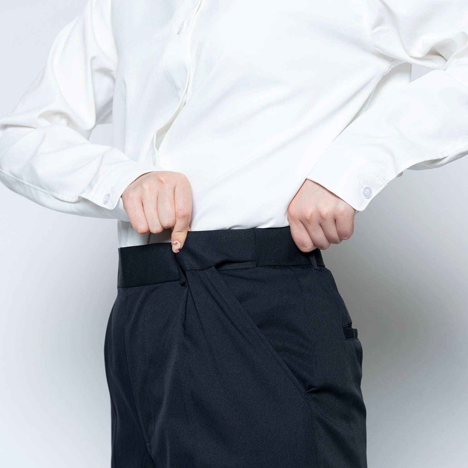 「Bizテーラードジャケット」は、既存のテーラードライトジャケットに比べ、Iラインを強調し女性の身体を華奢に魅せるすっきりシルエットにこだわり、ヒップが少し隠れる着丈で体型カバーを実現しました。また、内側にはセキュリティ面も安心なファスナーポケットやペン挿し、パッチポケットを搭載しました。「Bizストレートパンツ」は、既存のストレートパンツのウエスト後ろにあるゴムをなくし、ゴムを両サイドの内部に内蔵させることでヒップが綺麗に見え、トップスをインしてもスマートにきまるデザインに仕上げました。形はストレート寄りのテーパードで、足を長く見せるセンタープレス加工を施しました。
