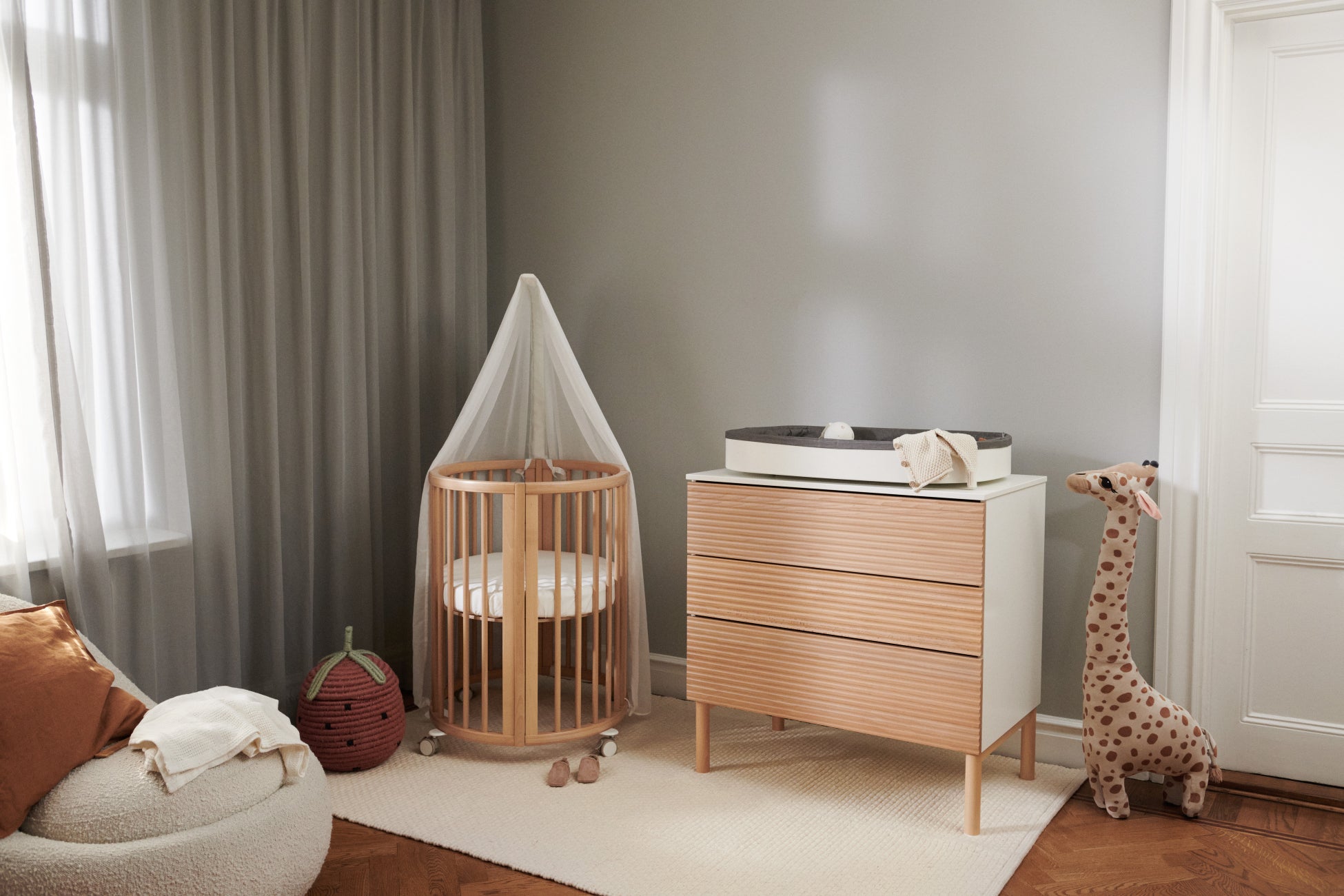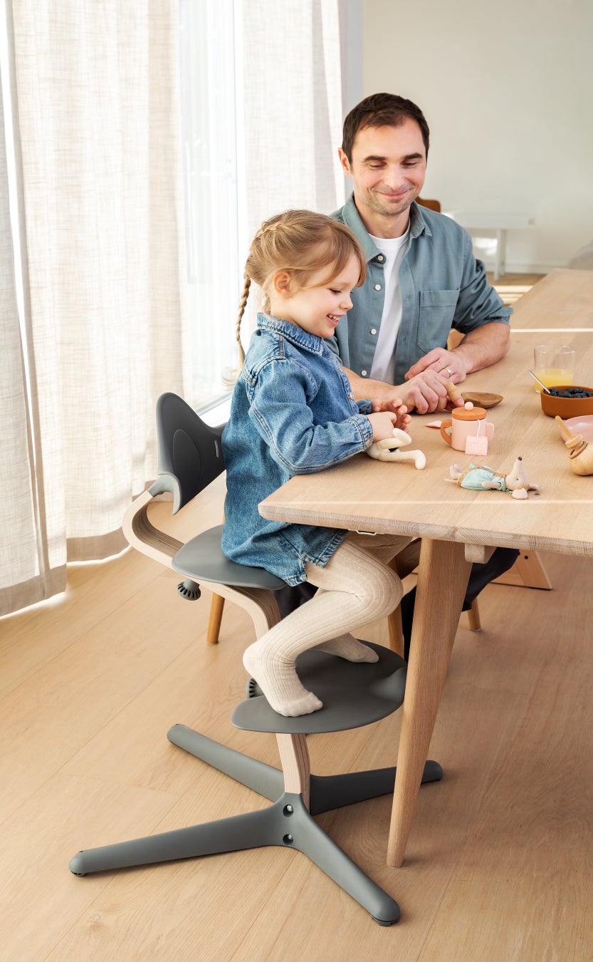 サステイナビリティを念頭に置いてヨーロッパ産の木材で作られたベビーチェアは、お子さまの成長に合わせて長く使えるように作られており、大人になるまでお使いいただけます。