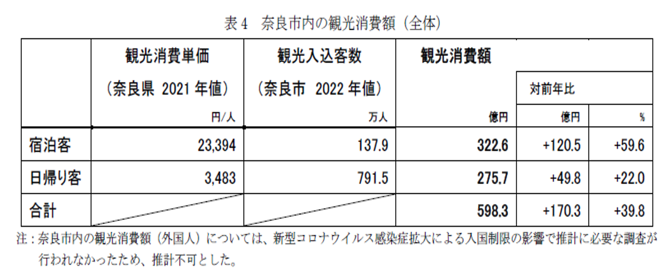 ◆奈良市内の観光消費額は598.3億円(前年比170.3億円増)【参考値】