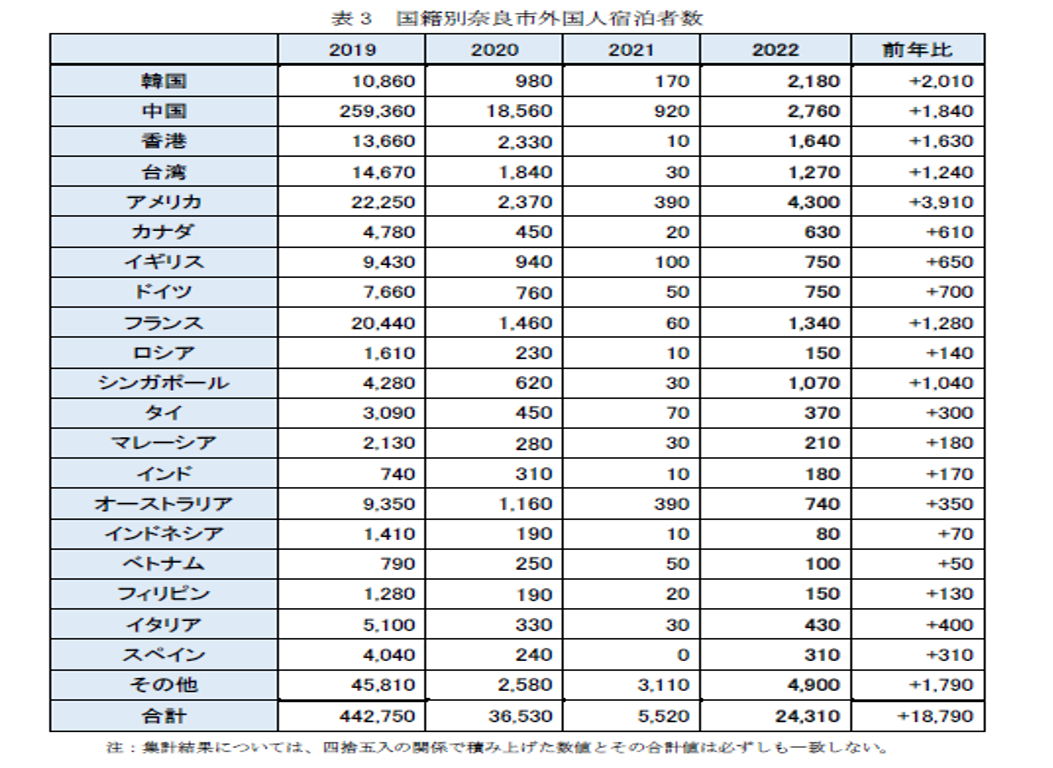 2022年に奈良市内に宿泊した外国人観光客数は、2.4万人でした。(前年比300.0%増)