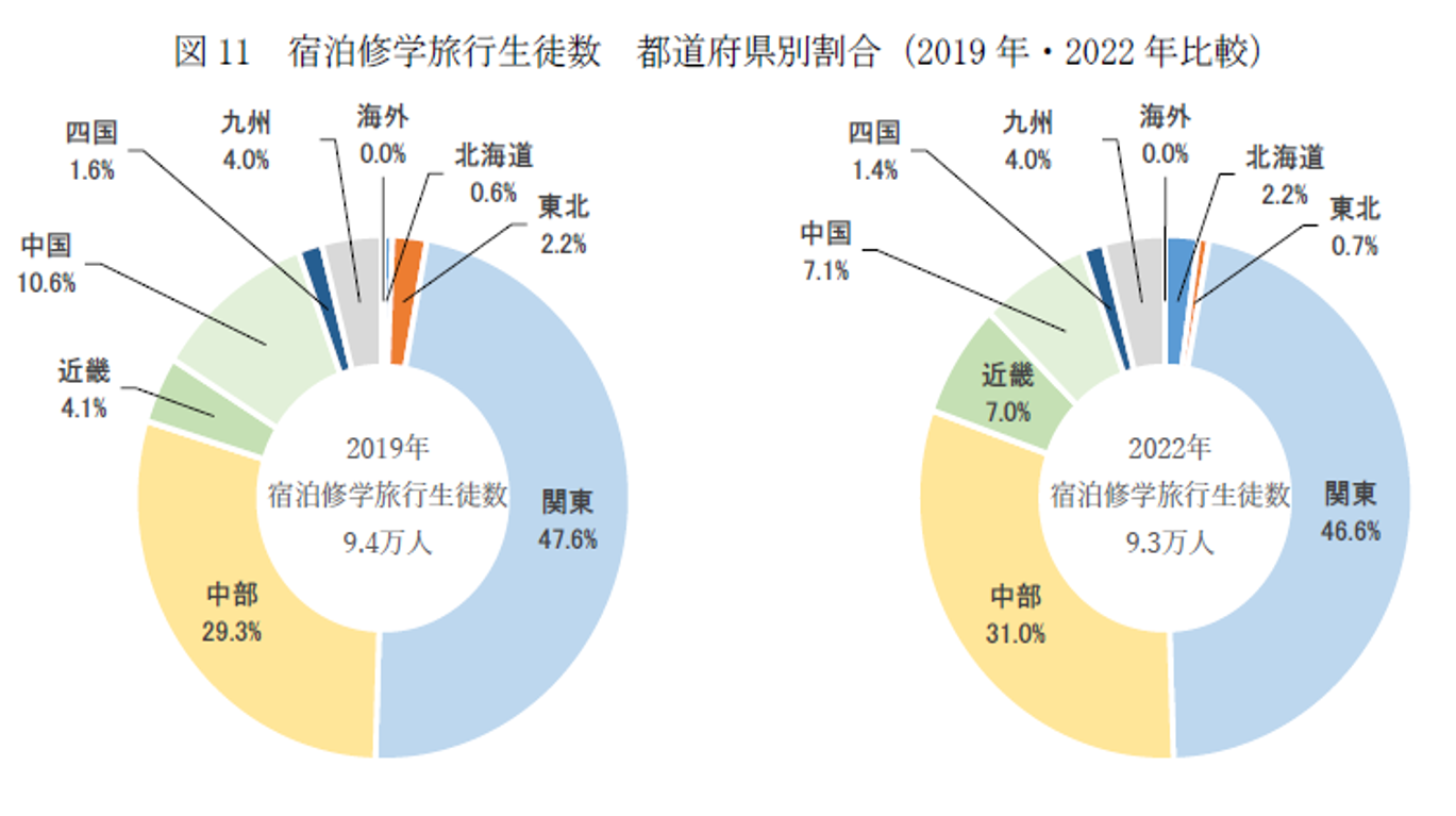 ◆修学旅行生徒数は58.3万人(前年比 126.0%増)。コロナ前(2019年)と比べると約7割までに回復しており、月別で見ると10月以降はコロナ前を上回る回復となった。