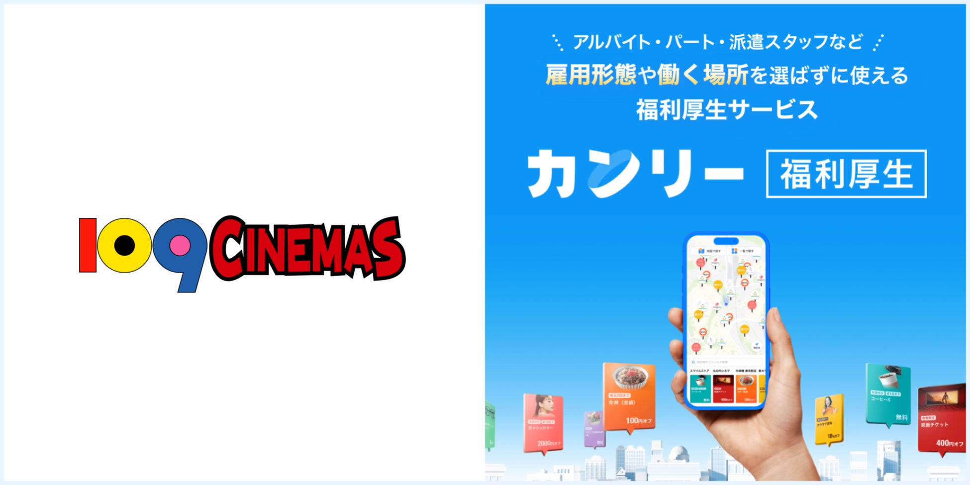 2024年2⽉より株式会社カンリーが提供する福利厚生サービス『カンリー福利厚生(フクリー)』に109シネマズ&ムービルがクーポン掲載パートナーとして参加し、カンリー福利厚生(フクリー)上に限定クーポンの掲載が決定しましたので、お知らせ致します。