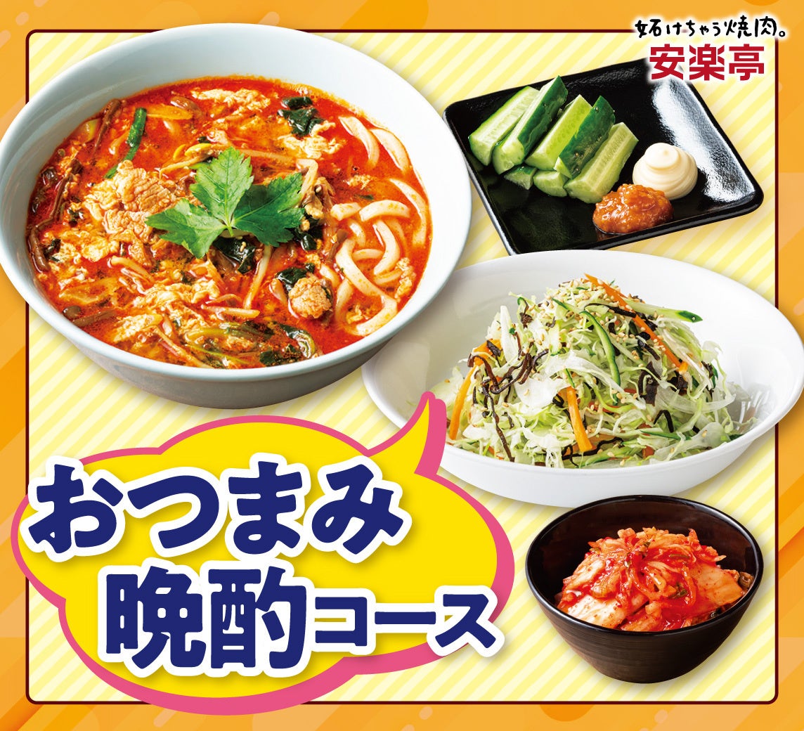 この価格でこの満足感!安楽亭の食べ放題に “おつまみ晩酌コース”2,980円(税込3,278円)新登場!「焼肉&おつまみ」で1杯じゃ終われない!飲んで焼いて、また飲んで。気が付けば焼肉飲み無限ループ!