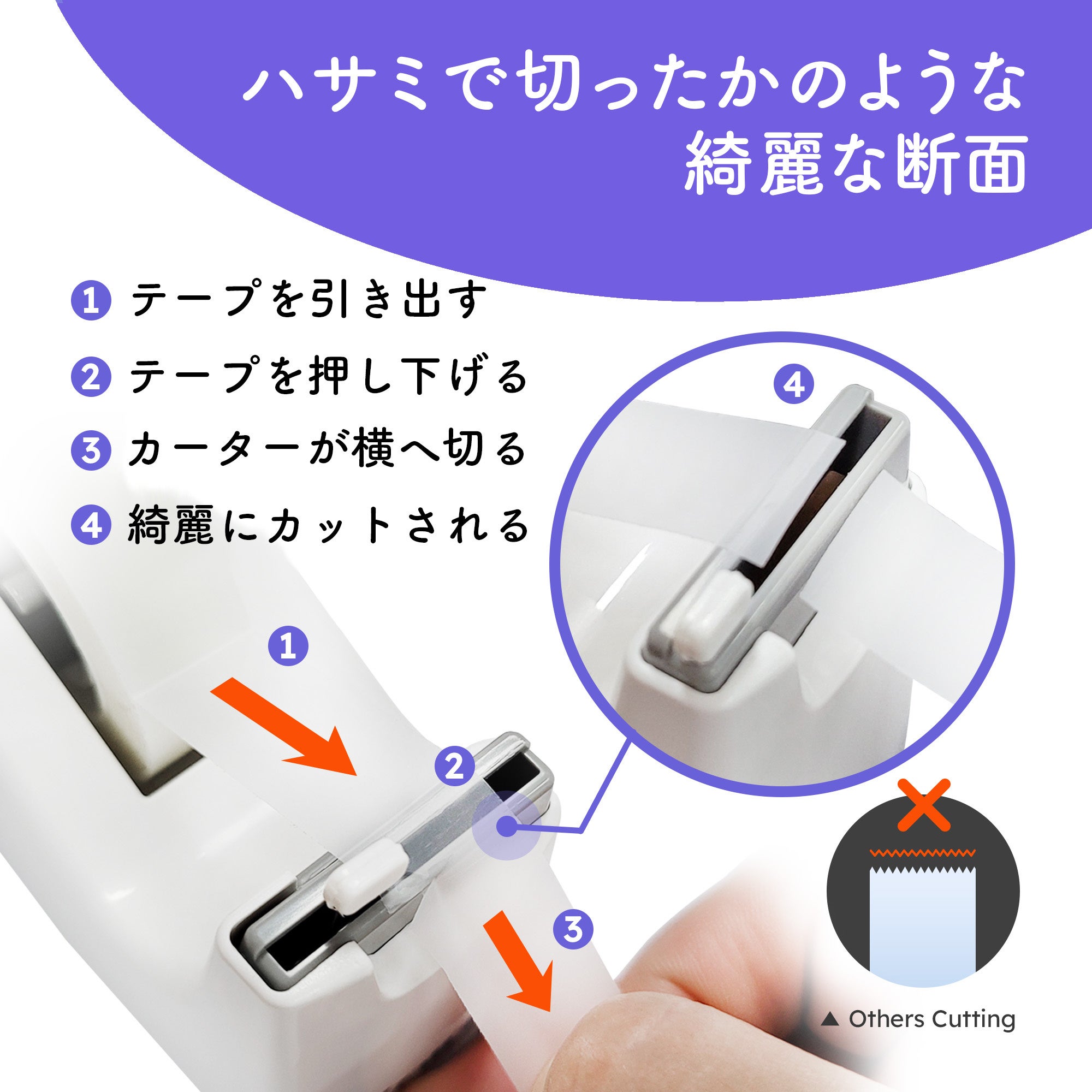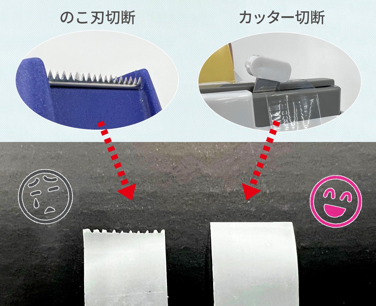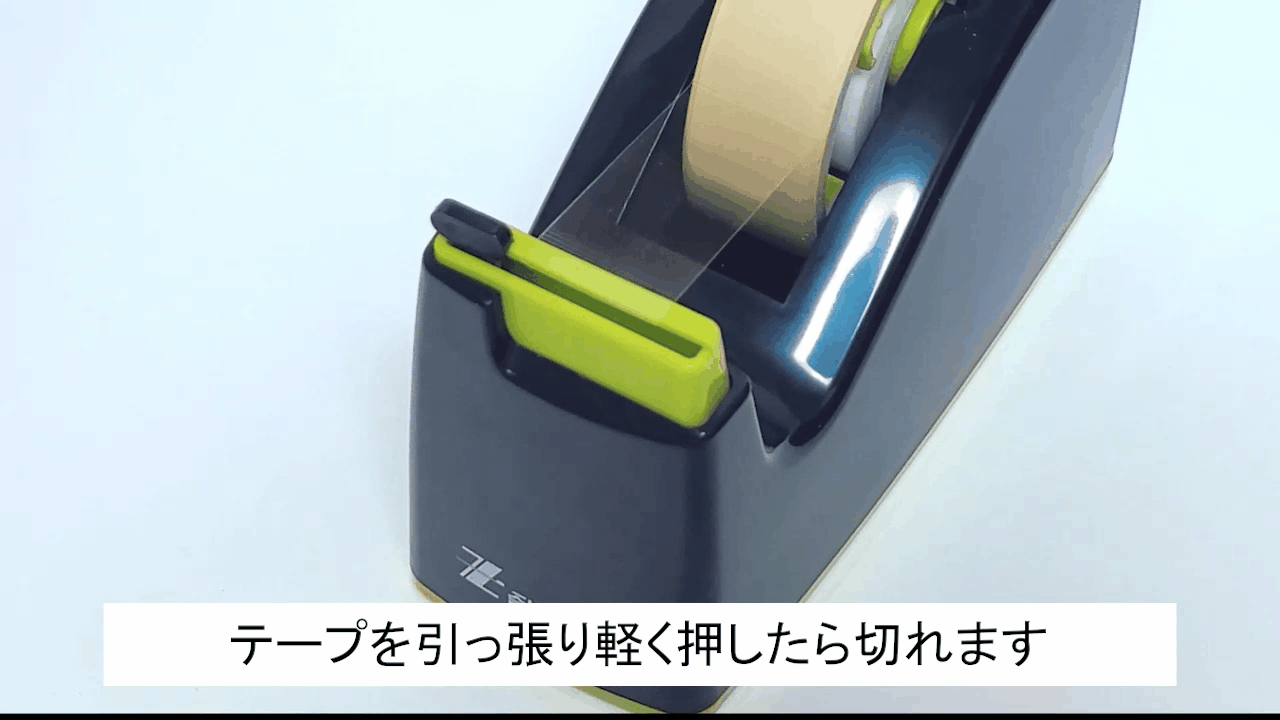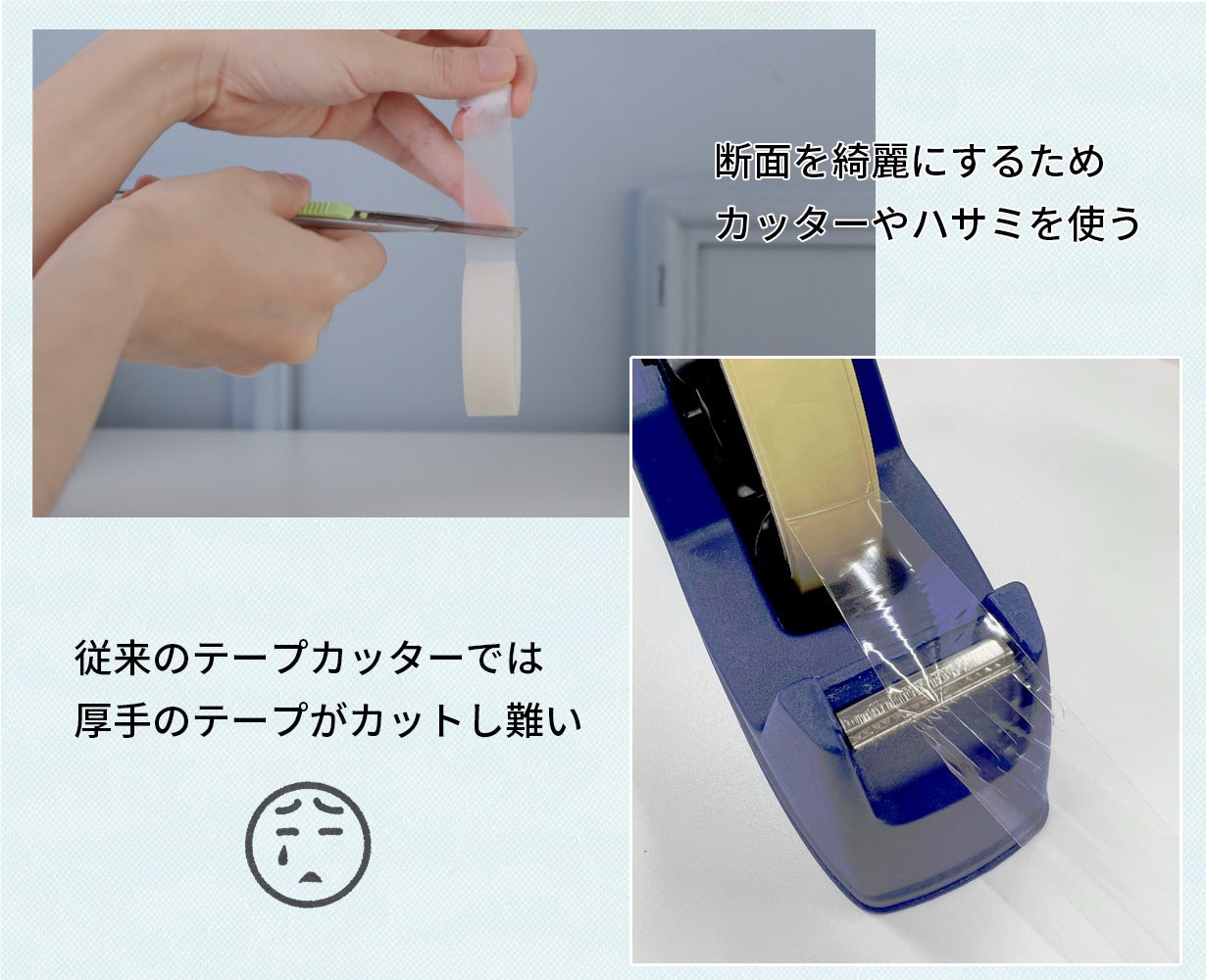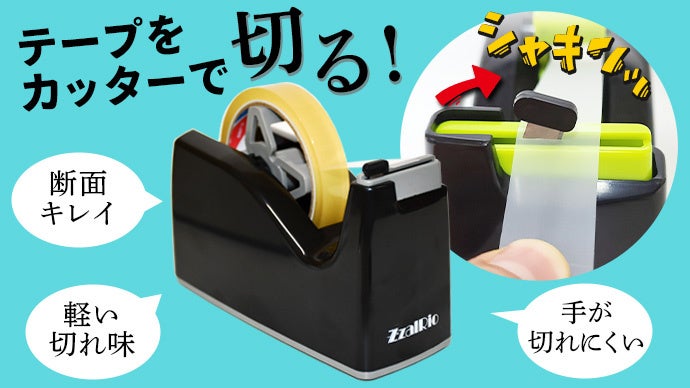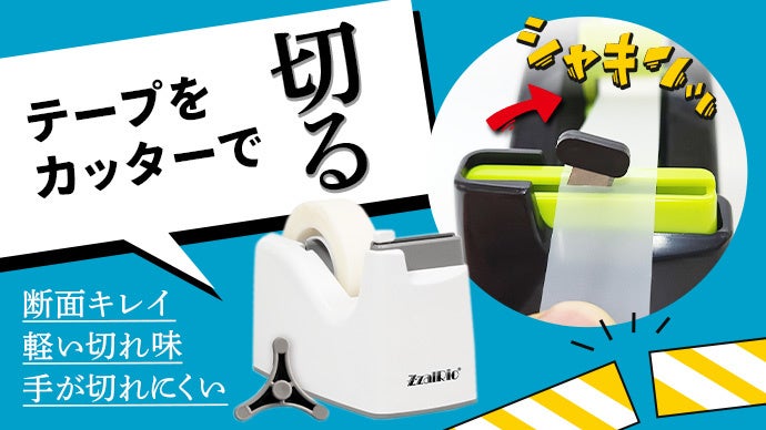 このテープカッターは、まるでハサミで切ったかのような綺麗な切断面と手軽さが魅力。