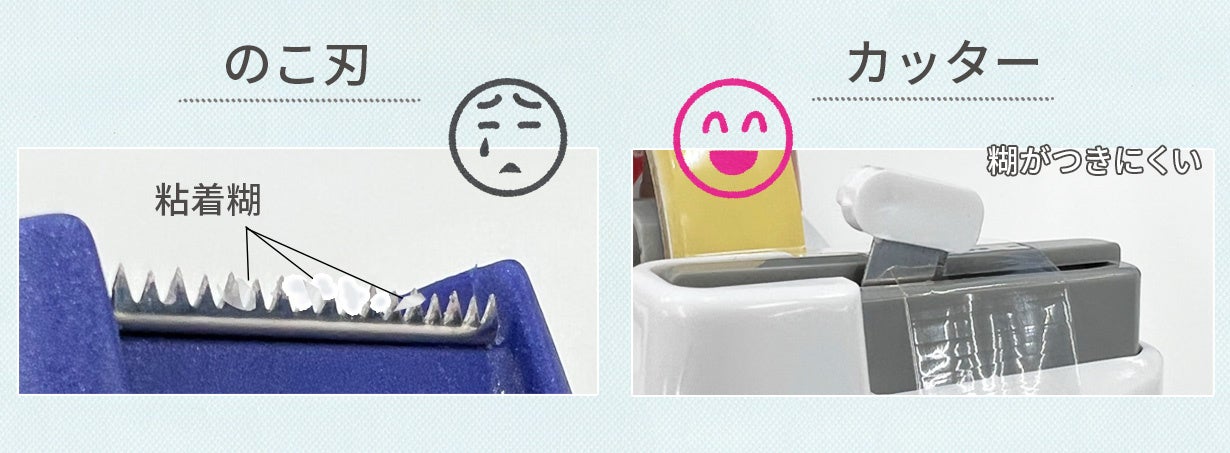 どこのご家庭、学校、職場にもあるテープカッター(テープディスペンサー)は露出したギザギザな刃でテープをちぎるように切断するのが一般的でした。