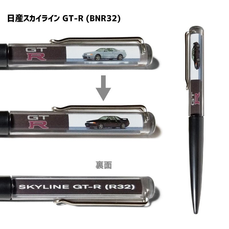 R32の愛称で知られる日産スカイライン GT-R (BNR32) の車体カラーがペンの中でゆっくりと変わる遊び心たっぷりのデザインを楽しむことができます。(400個限定生産)