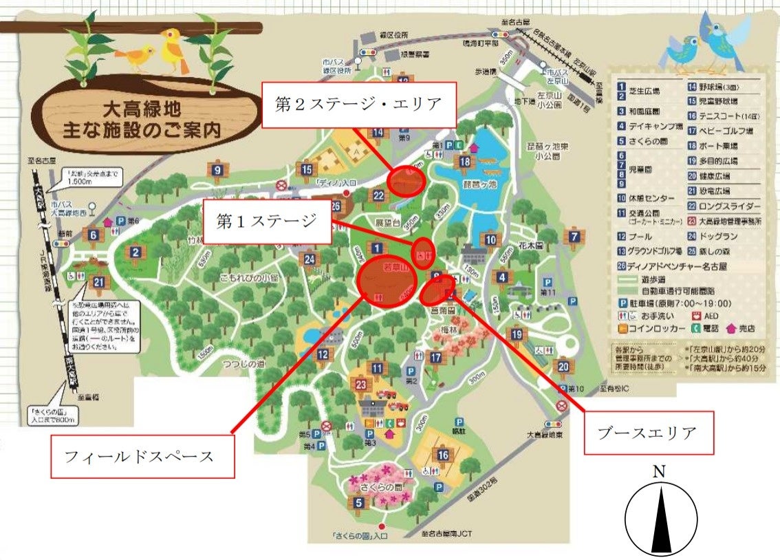 | アクセスについて 交通渋滞防止の為、イベント当日、大高緑地への車の乗り入れは御遠慮ください。 公共交通機関利用による来場をお願いいたします。 |