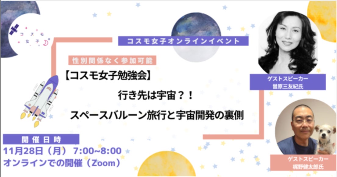 株式会社Kanatta(東京都目黒区、代表取締役社長:井口恵)が運営する「コスモ女子」は、11月28日(月)に宇宙旅行や宇宙開発に関するオンライン勉強会を開催しました。