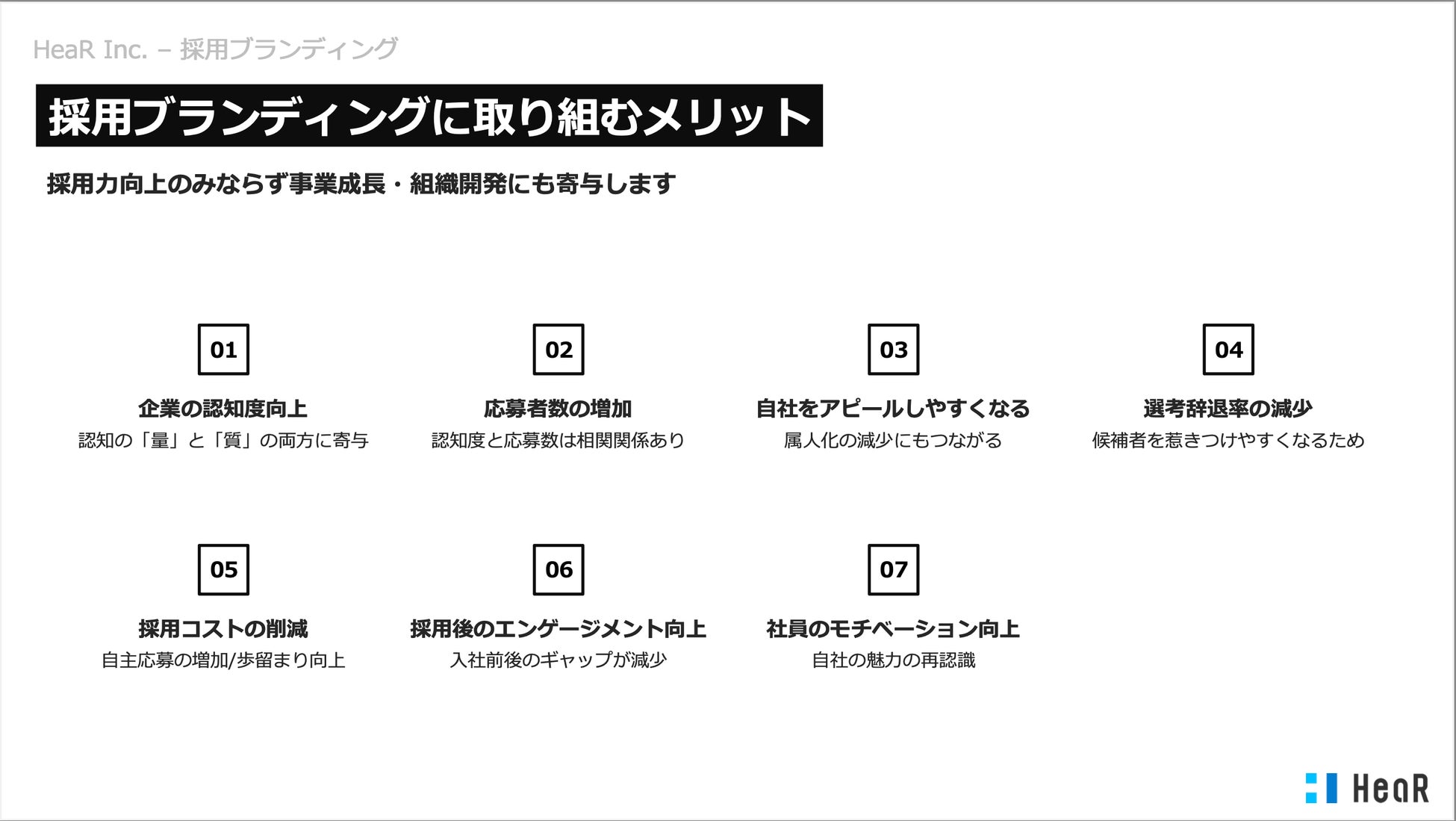 採用支援を続けてきたHeaRとしても、採用手法の多様化・リソースの投下増も含め、採用戦略の根本となる採用ブランディングの「採用ブランディング」の重要性を再認識しております。