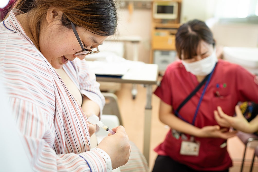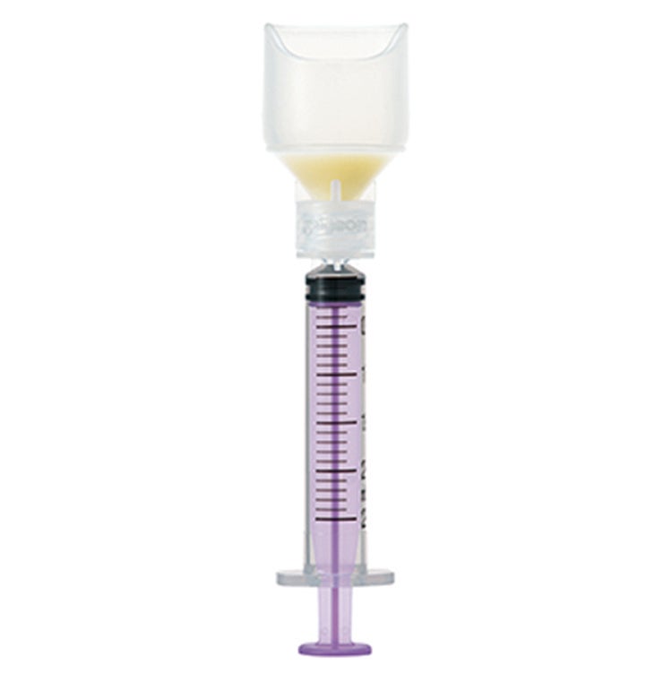 病院で使う栄養シリンジに直接接続できるので、初乳を移し替える手間がなく、より衛生的に、無駄なく赤ちゃんに初乳を届けられます。