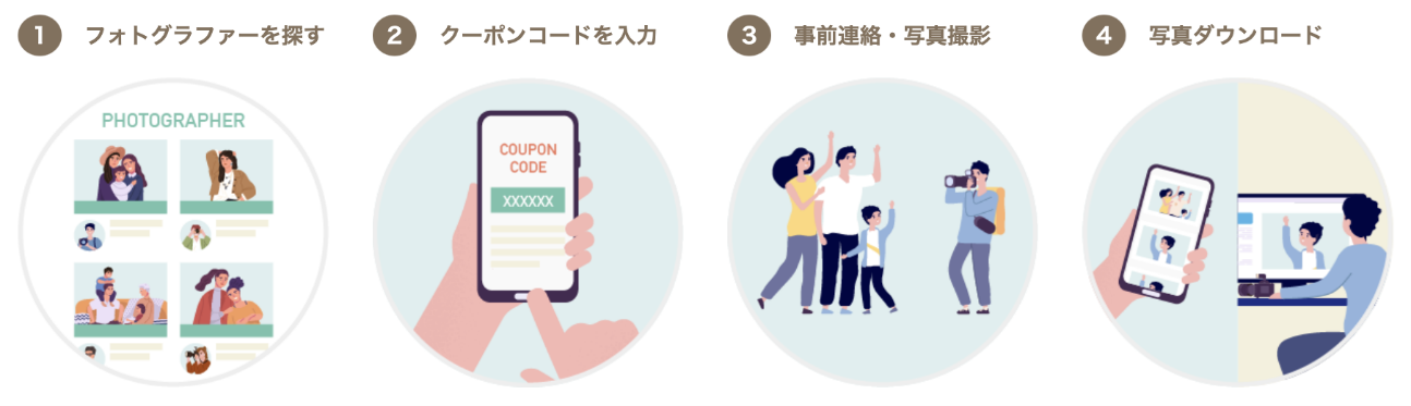 OurPhoto(アワーフォト)は、写真を撮ってほしい個人と写真を撮りたいフォトグラファーをつなげるマッチングサービスです。撮影場所はスタジオに限らず、指定の場所へとフォトグラファーに来てもらう「出張撮影」というスタイルを用いており、ユーザーのニーズに応じて記念日をはじめ、思い出に残したい日を撮影することができます。