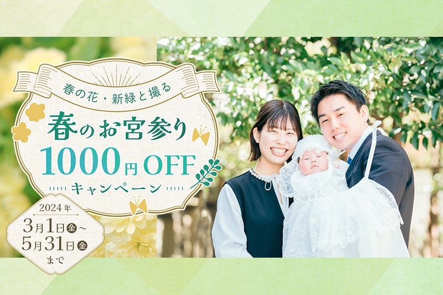 「春の花・新緑と撮る春のお宮参り1,000円OFFキャンペーン」特設サイト:https://our-photo.co/lp/shrinevisit202403
