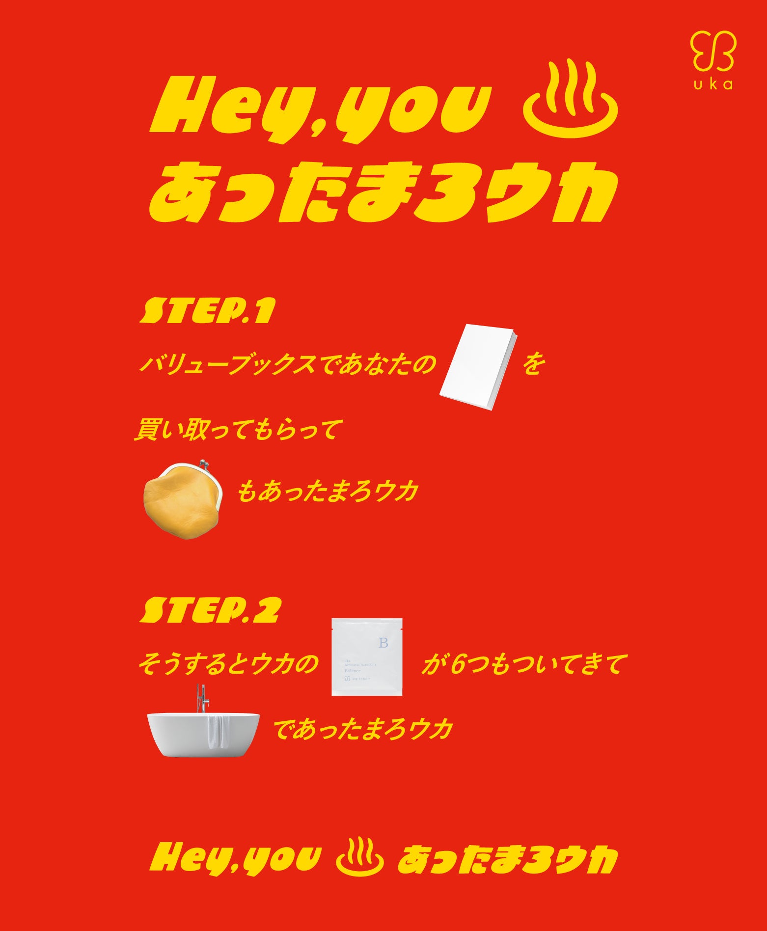 期間中、バリューブックスで1000円以上の本の買取をお願いすると、ukaのアロマティック バスソルトを6つプレゼント。
