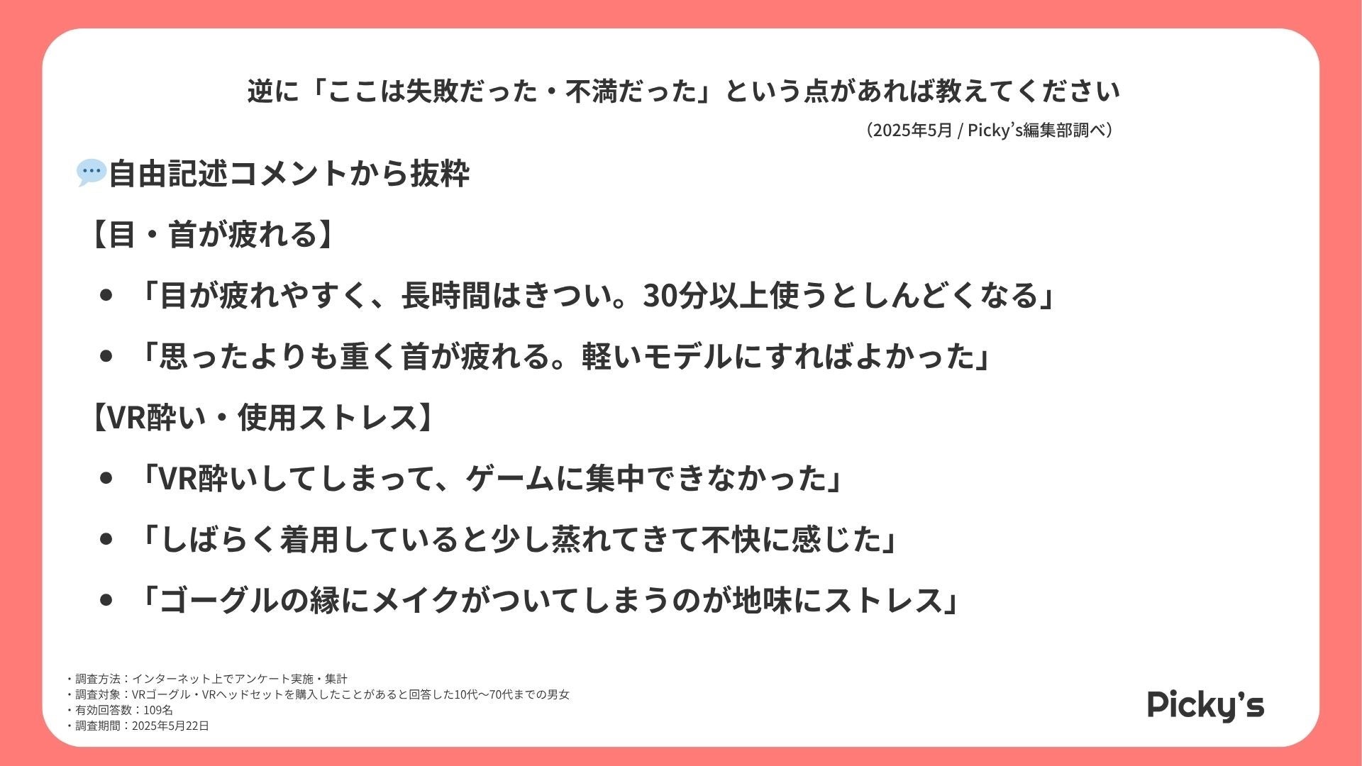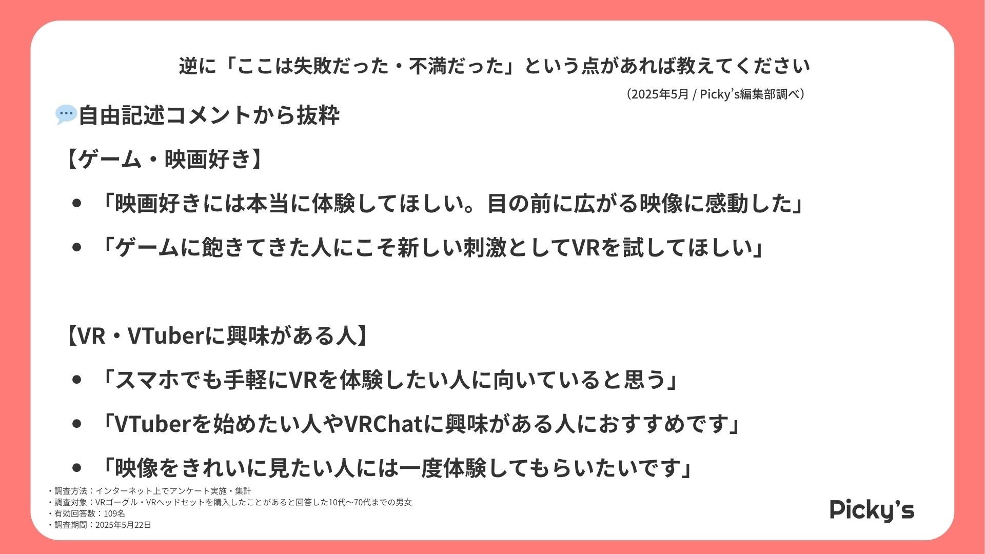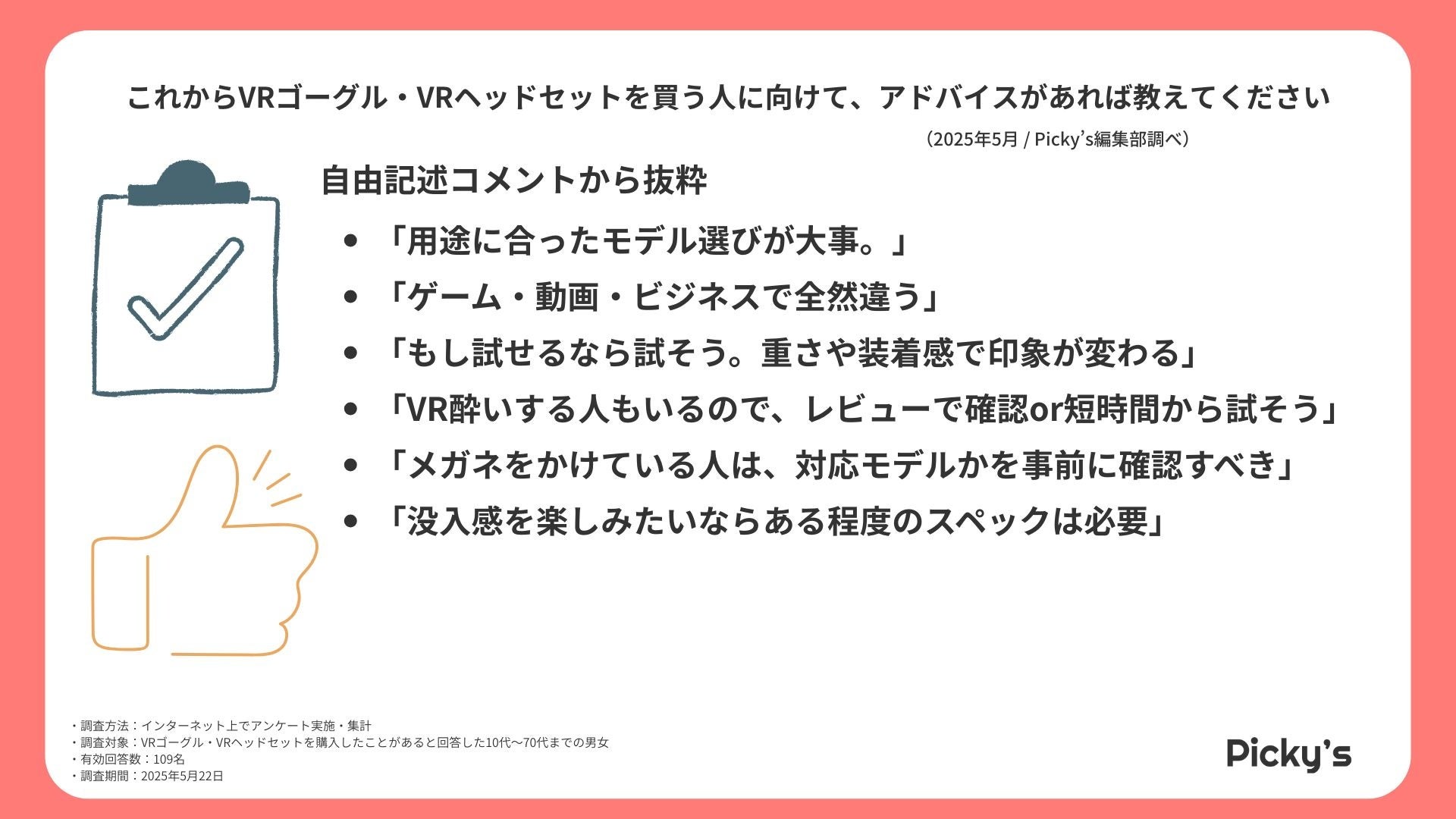 このたびPicky’s(https://picky-s.jp/)およびPicky’s Life(https://pickys-life.jp/)では、インターネット上でVRゴーグルに関するアンケート調査を実施し、その結果を発表します。