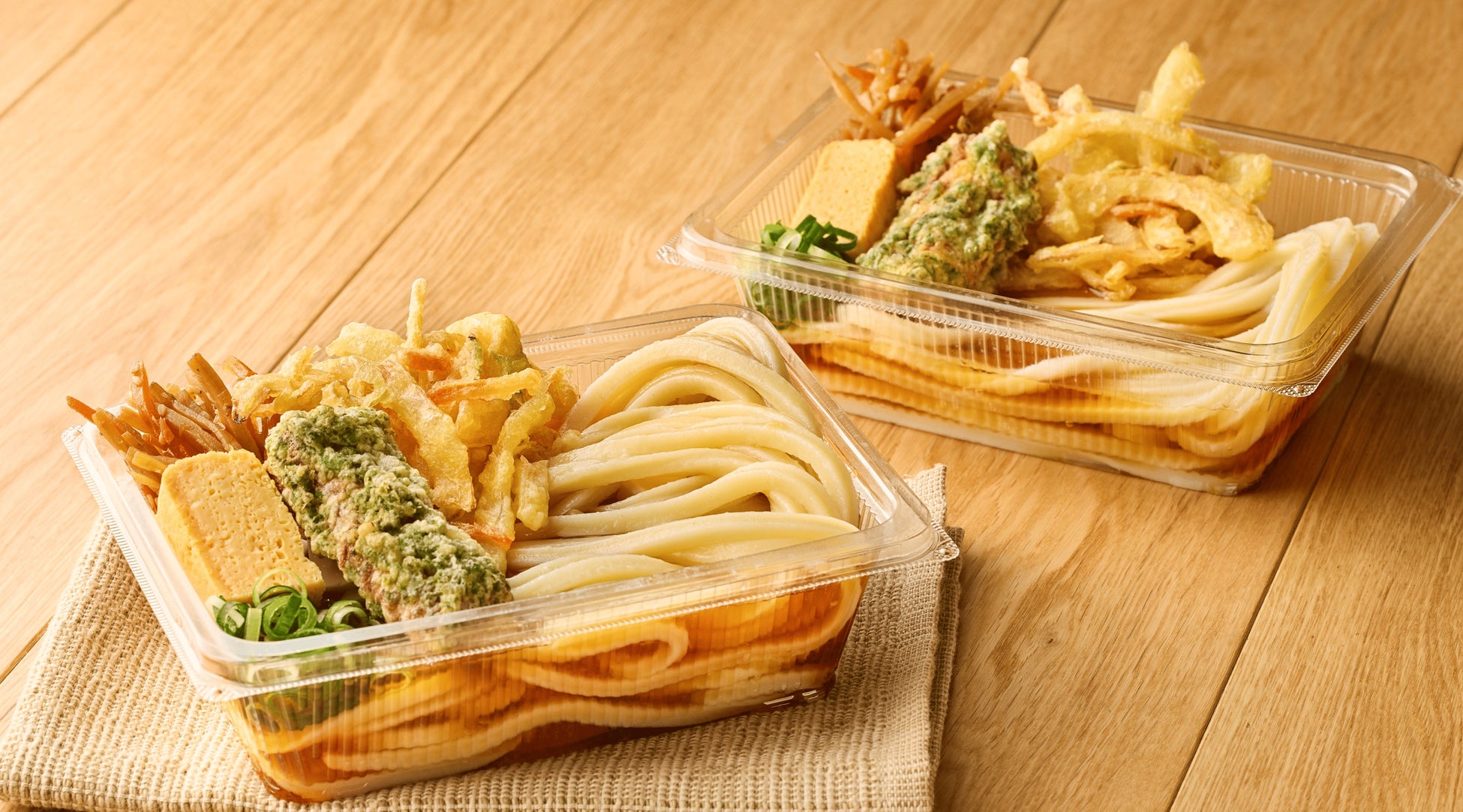 打ち立てのうどんに、人気の天ぷらとおかずが入った定番の「丸亀うどん弁当」も継続して販売中です。バラエティ豊かなラインアップから、お好みのひと箱を見つけてください。