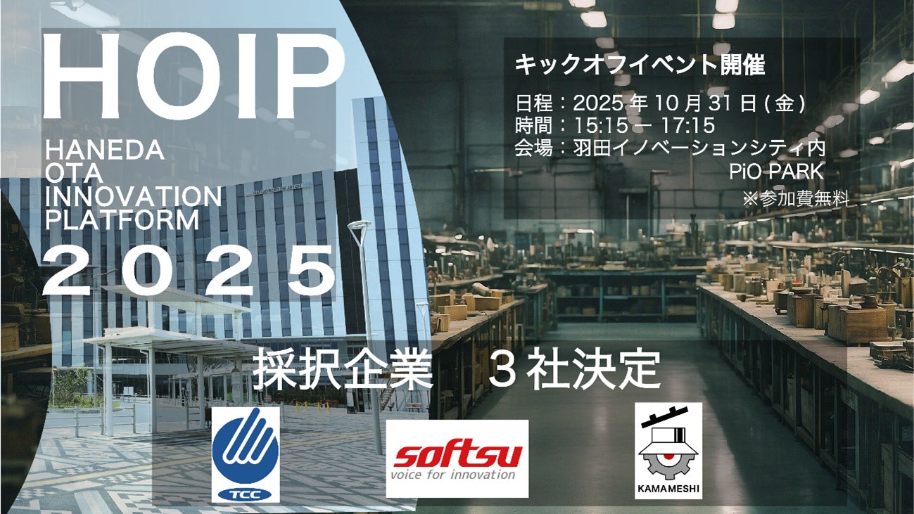 「WakuWaku the World」をミッションに掲げ、挑戦者が挑戦者であり続けられる世界を目指す株式会社ボーンレックス(東京都千代田区、代表取締役 室岡拓也 以下、当社)が大田区より受託し運営を行っている大田区実証実験・実装促進事業「HOIP (Haneda Ota Innovation Platform)」(以下、本事業)はこの度、令和7年度採択事業3社を決定し、今年度のキックオフイベントを10月31日(金)に羽田イノベーションシティ内PiO PARKにて開催いたします。