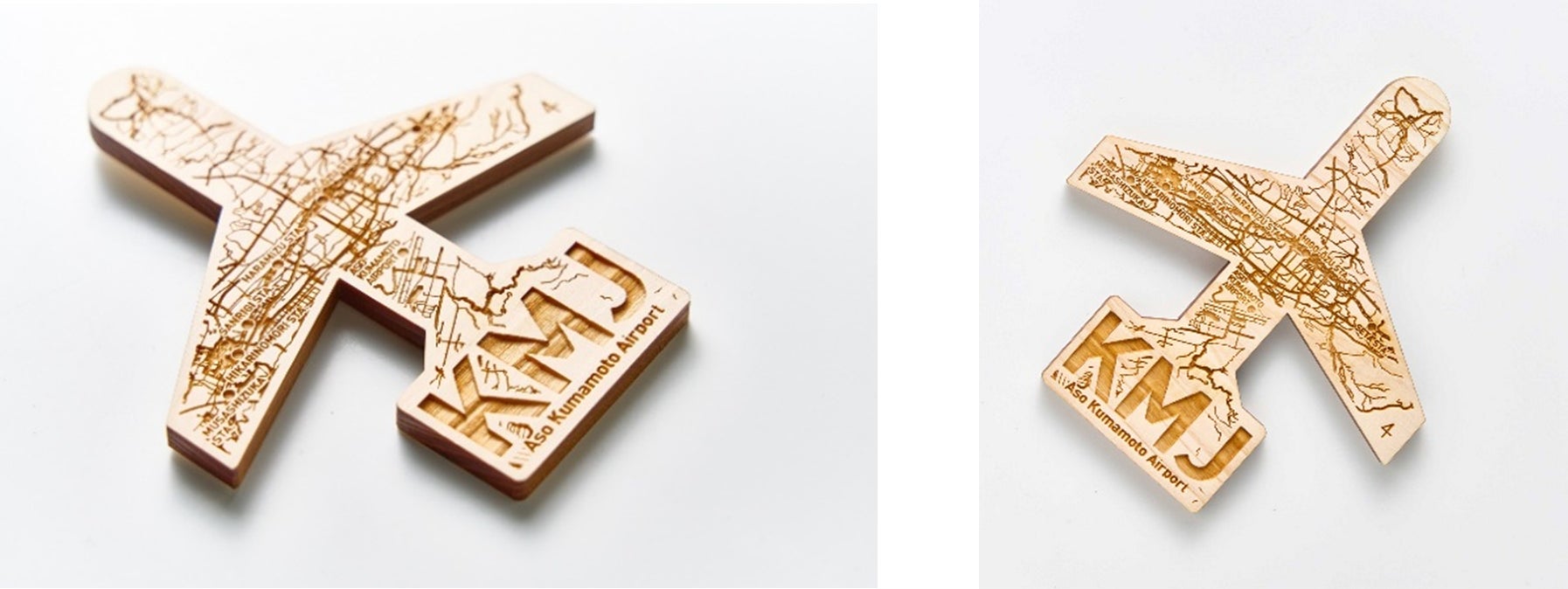国産のヒノキを使用した、良い香りが漂い、日本を感じていただけるシリーズ商品です。ヒノキの木目の美しさと温もりを感じつつ、阿蘇くまもと空港周辺の詳細地図を刻印したデザインを楽しめます。