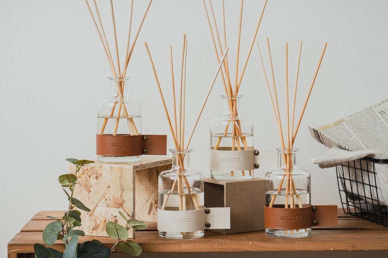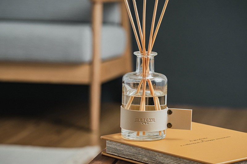 レザー調ベルトをあしらった、シンプルで温かみのあるルームフレグランスが登場。mercyuから「Leather Collection(レザーコレクション)リードディフューザー」が新発売!