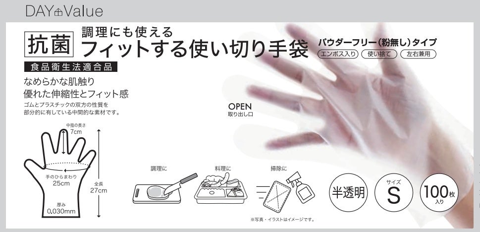 この度ニトリは、「つけるのが面倒、つけると作業しづらい」というお客様の声にお応えし、手が入れやすく、伸び縮みするためしっかり手にフィットする使い切り手袋を開発いたしました。粉が付かず、なめらかな肌触りなので、使い心地抜群。また、蒸れにくいエンボス加工を施した手袋で、調理時にも大活躍いたします。便利な使い切り手袋を、ぜひお試しください。毎日使うものだからこそ、使いやすく便利でラクな商品を使用していただきたい。