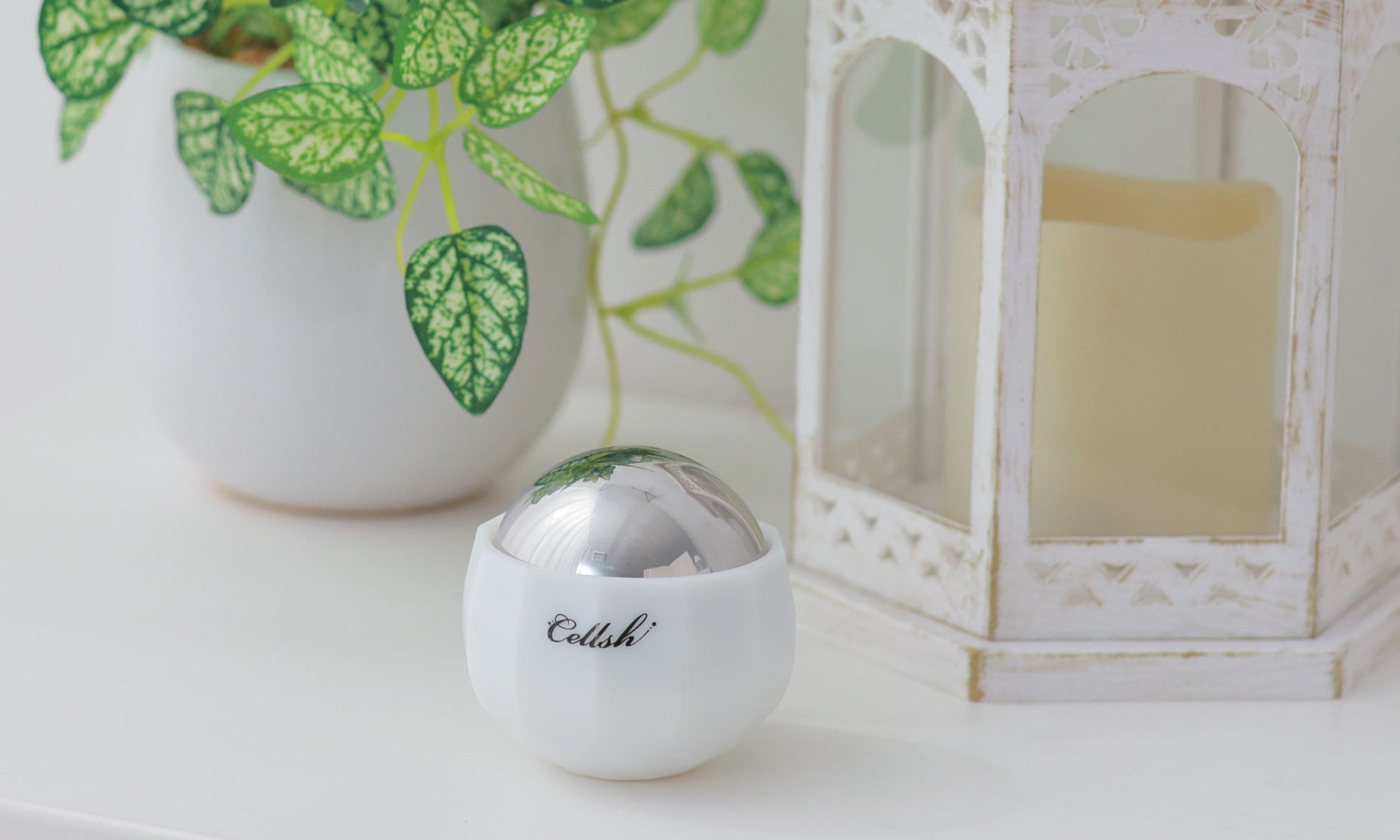 肌に軽く押し当ててコロコロ♪360°転がるステンレスボールが肌に密着!メイク前の肌の引き締めにも♪