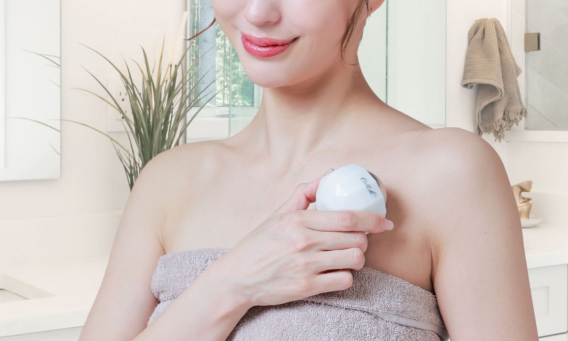 手のひらにおさまる丸いフォルムが持ちやすく、ダイヤモンドをイメージしたデザインが高級感を演出します。