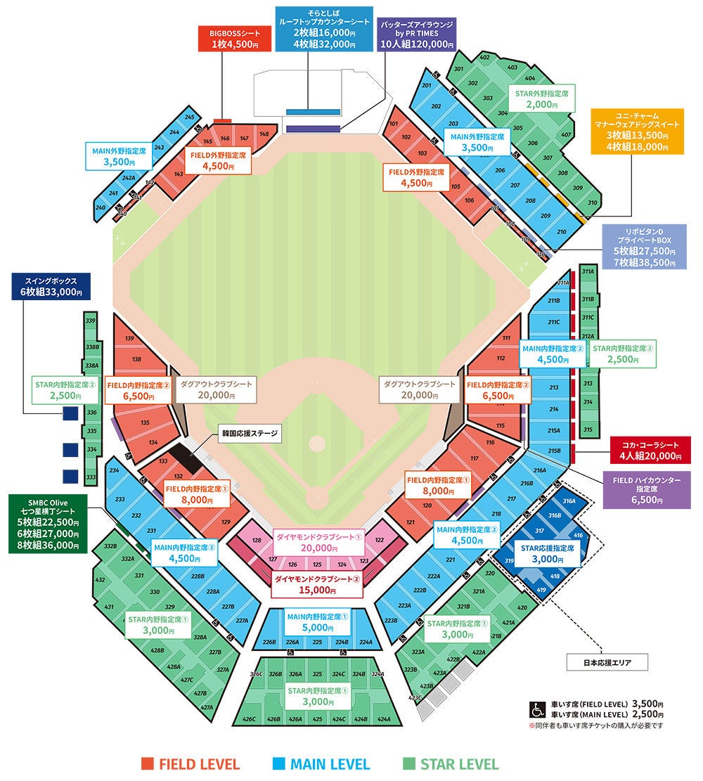 ※MAIN・STAR LEVELのスタンド座席には子ども価格がございます(おとな価格の半額)