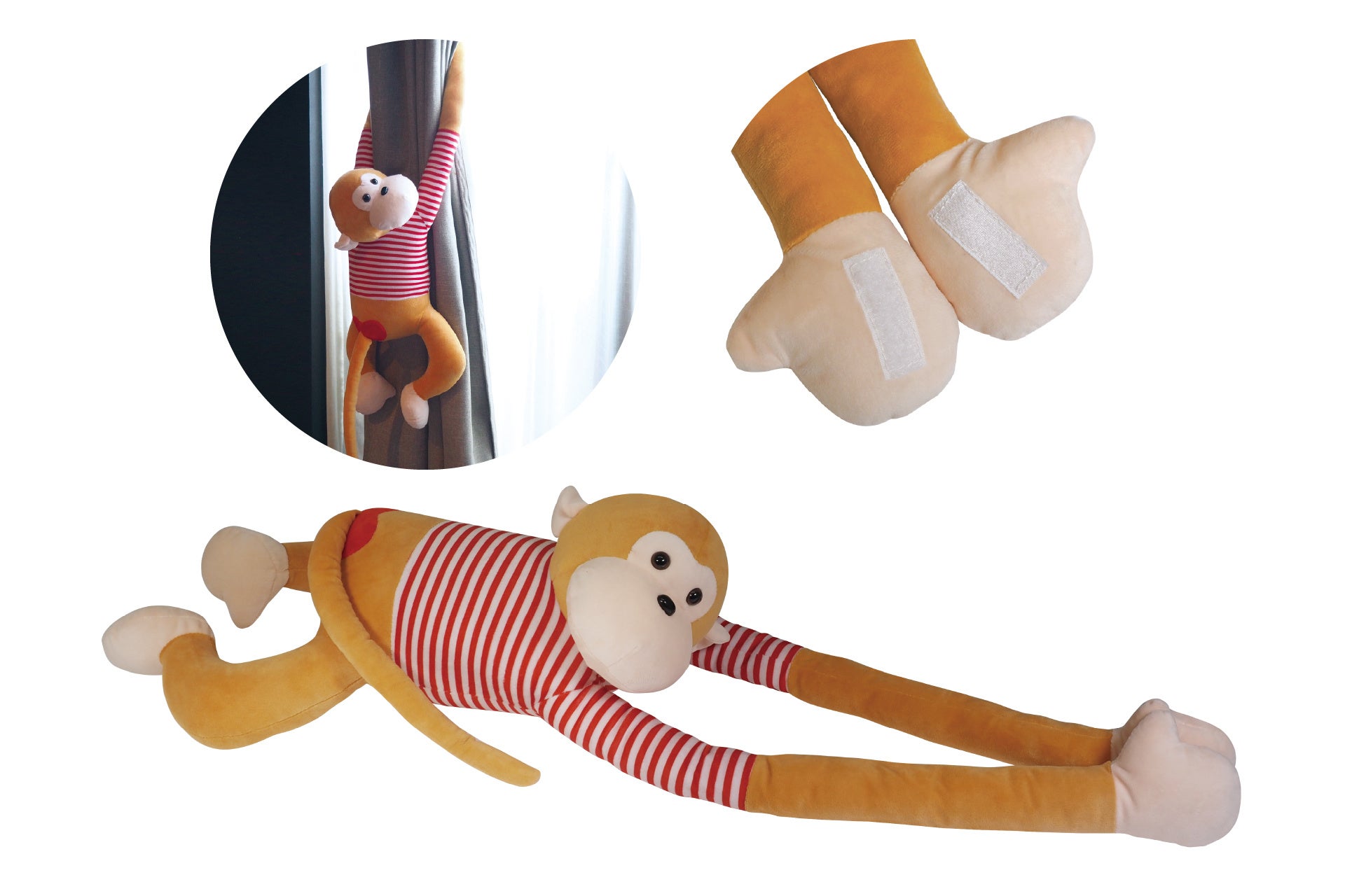 特徴:ながーい手が特徴のぶら下りモンキー!手に着脱テープが付いていて、どこでもぶら下がるよ♪おんぶをしたり、カーテンにぶら下がったりとっても可愛い!チャームポイントは、お尻がハートになっていてかわいさ満点♪