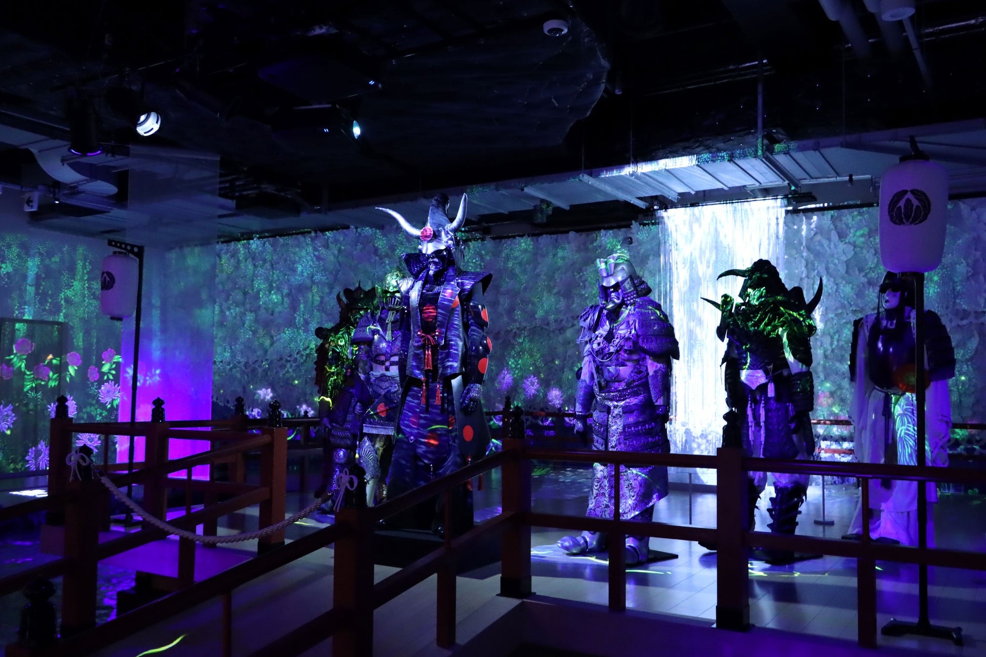 "七将軍が統治している鎖国体制の「龍ノ国」"という舞台設定に基づき、七将軍の個性に合わせて細部までこだわり設えた甲冑作品を、和の空間MIYABIに展示。BGMには石井氏が作曲した3楽曲を本企画展スペシャルバージョンで堪能することができます。