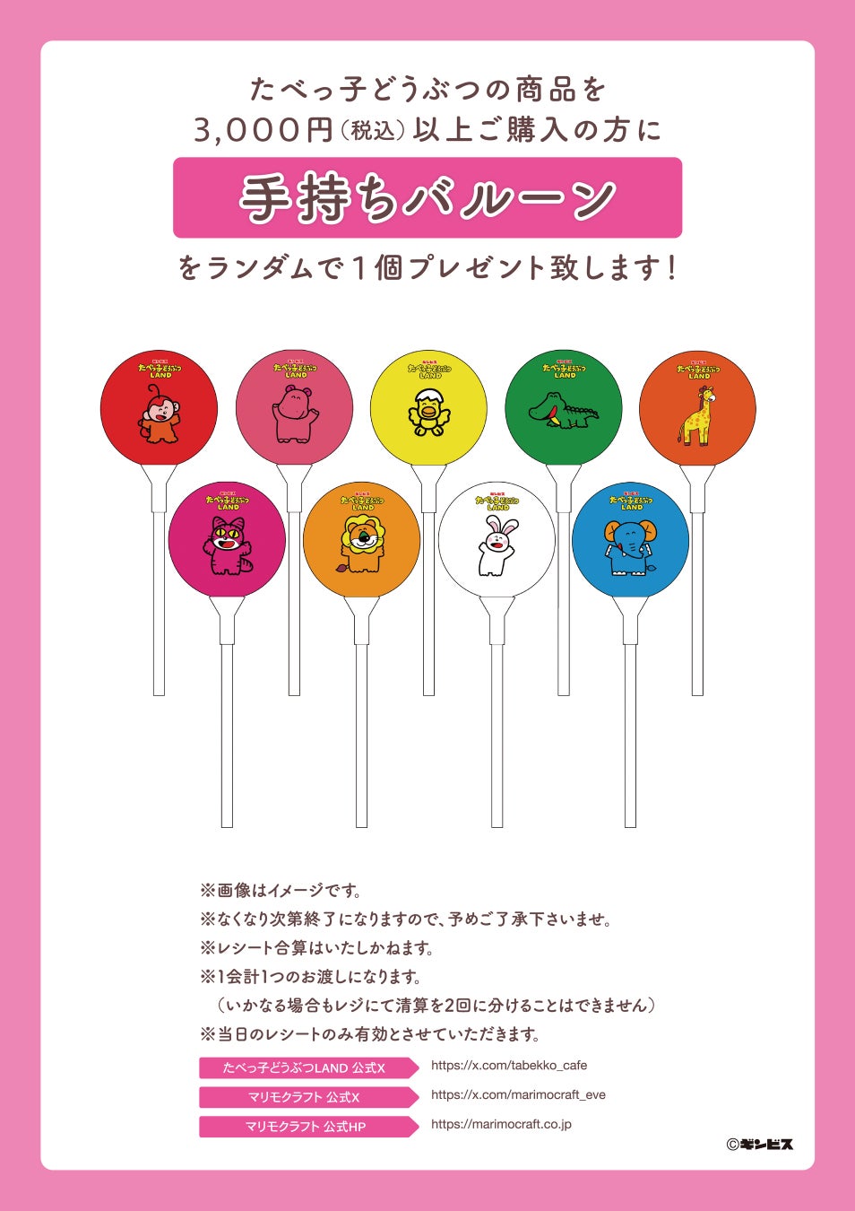 会場内で商品を3,000円(税込)以上ご購入いただいたお客様には、先着で「手持ちバルーン (全9種)」をランダムで1個プレゼントいたします。