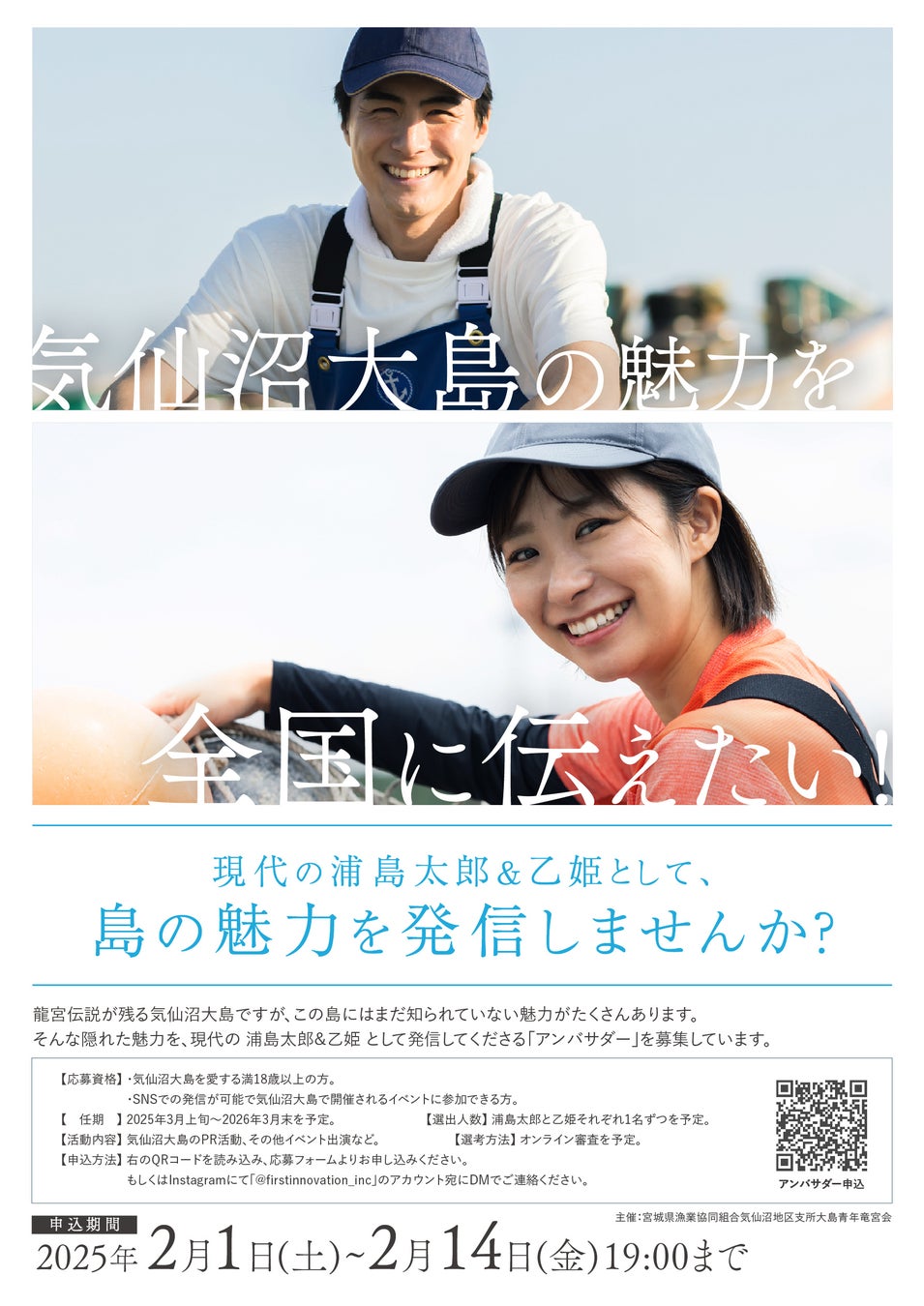 本プロジェクトでは、地域の魅力や復興のストーリーを全国へ発信する「現代の浦島太郎」と「乙姫」を選出します。選ばれたアンバサダーは、2025年3月に気仙沼大島で開催予定のイベントで正式に発表され、プロジェクトの代表者として活動を開始します。