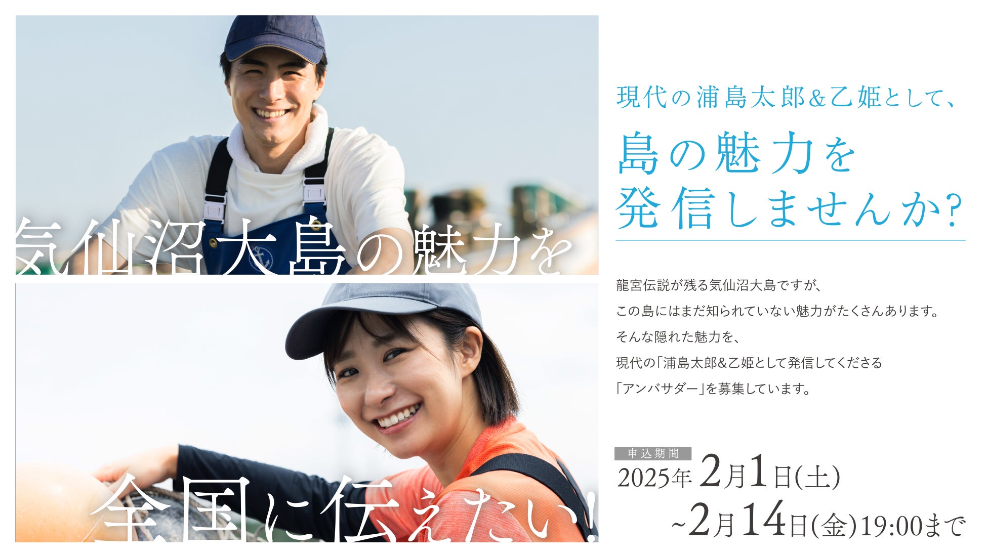 気仙沼大島の未来を共に描く「現代の浦島太郎」と「乙姫」を探しています!2025年2月1日~14日19:00まで応募受付中!2025年3月、気仙沼大島でアンバサダー発表!
