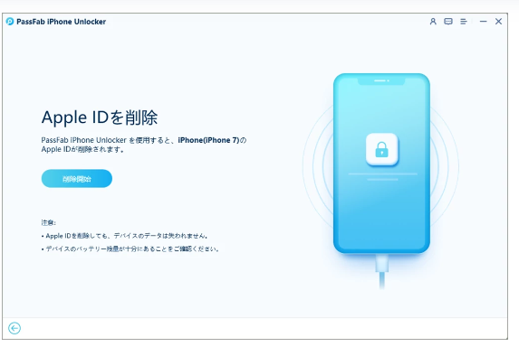 Step1.パソコンからPassFab iPhone Unlockを起動し、「Apple IDを削除」を選択します。