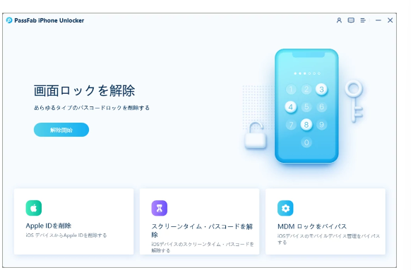 もしiPhoneまたはiPadの画面ロックがかかってしまっており、端末からIDを確認できないという場合でも問題ありません。そんなときには、専門ツールPassFab iPhone Unlockをダウンロードすることで、これらを解除することができます。ソフトPassFab iPhone Unlockは成功率100%のオールインワンiPhoneロック解除ツールで、画面ロックを解除できるでけでなく、初期化せずにスクリーンタイムのロックを解除することもできます。では、その使い方を詳しく紹介致します。