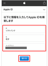 Step2.以下の画面にお使いのApple IDを入力し、「続ける」をタップします。