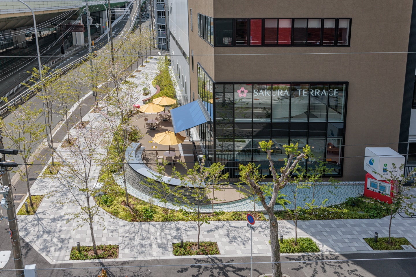 敷地外周部には、地域の歴史を感じさせる120本のソメイヨシノが堀川沿いにあった桜並木を再現しています。