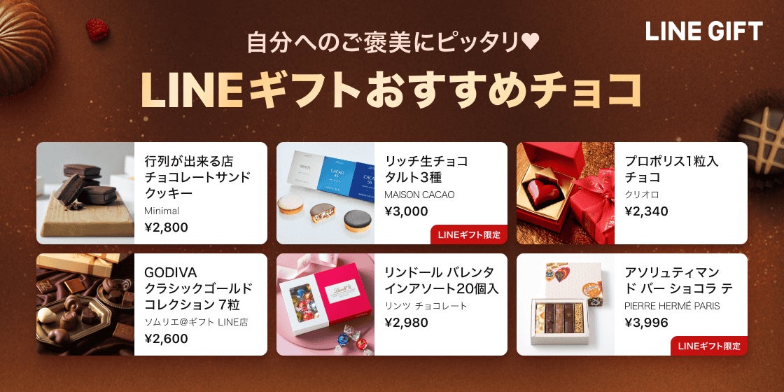 【LINEギフト】チョコ好きの心を満たす厳選スイーツを取り揃えた「ご褒美バレンタイン特集」を公開!