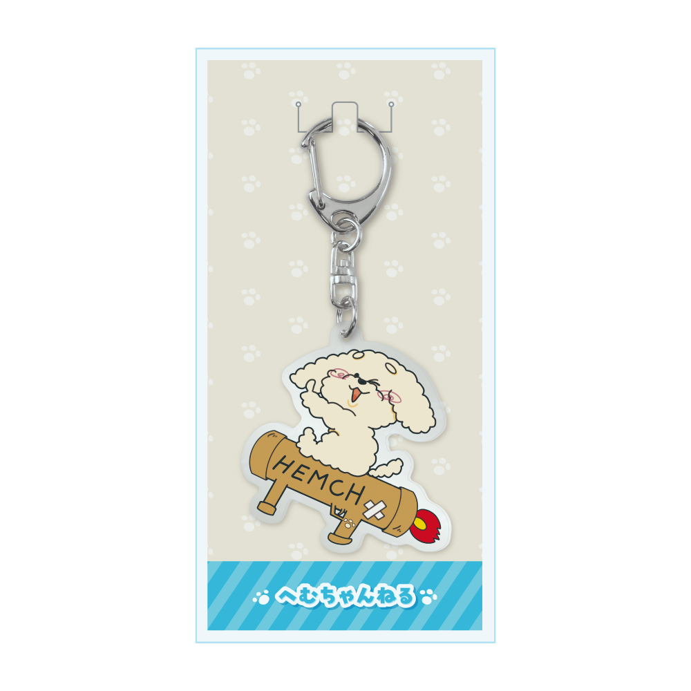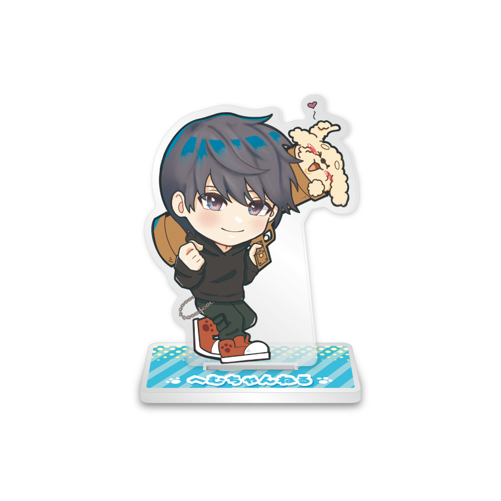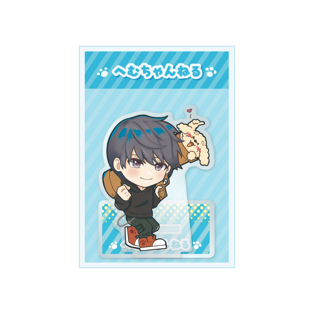 巾着、アクリルキーホルダー、アクリルスタンド、ランダム缶バッジなど、へむちゃんねるの世界観を楽しめるアイテムを発売