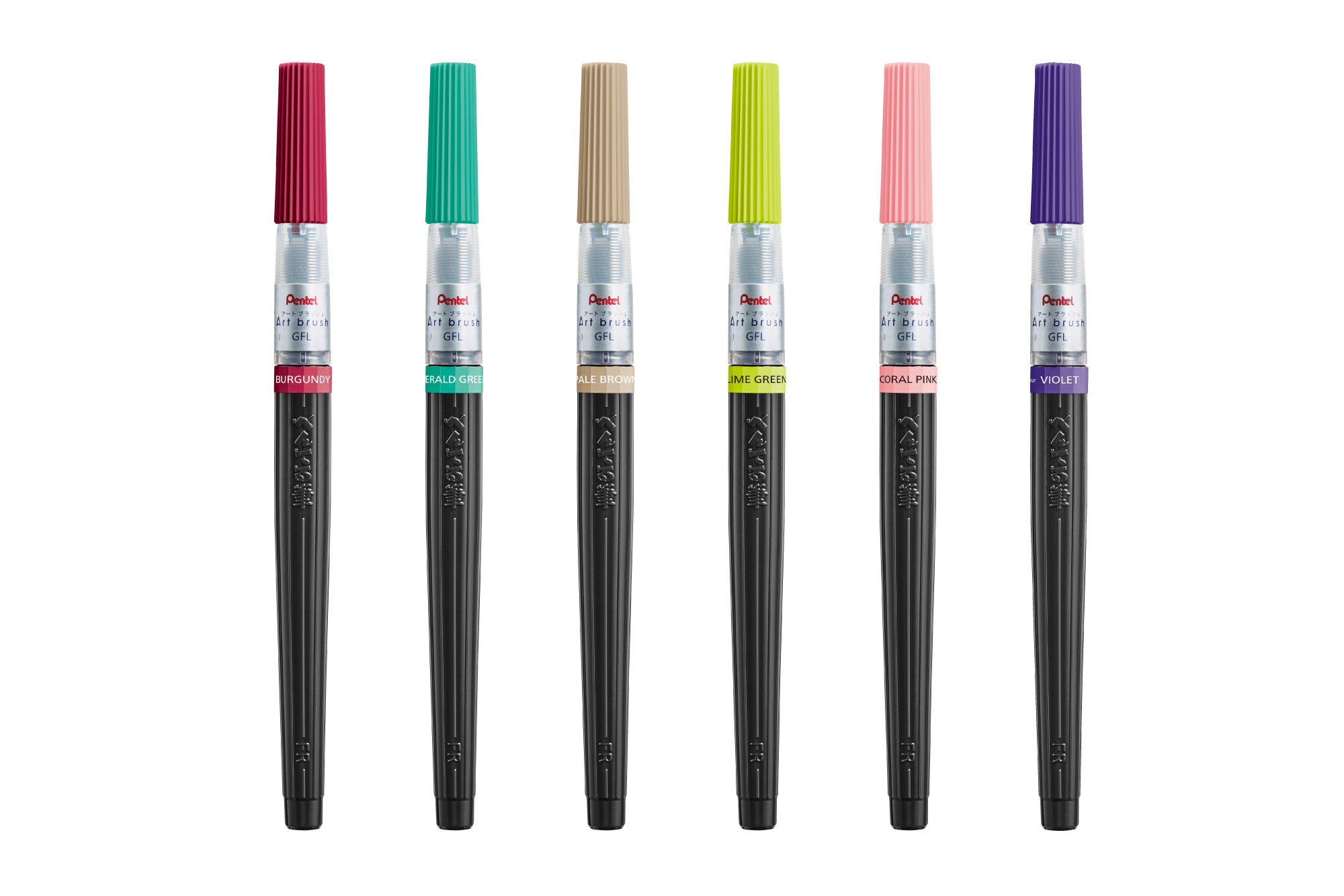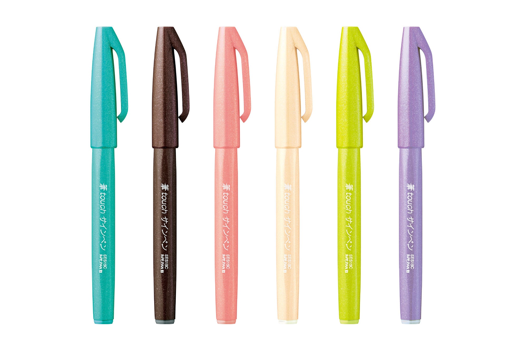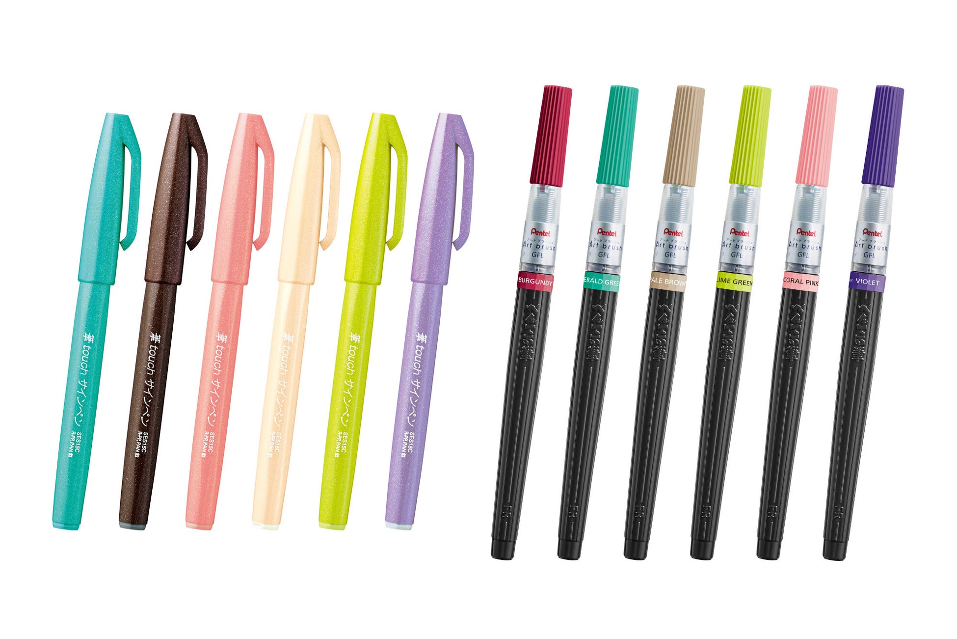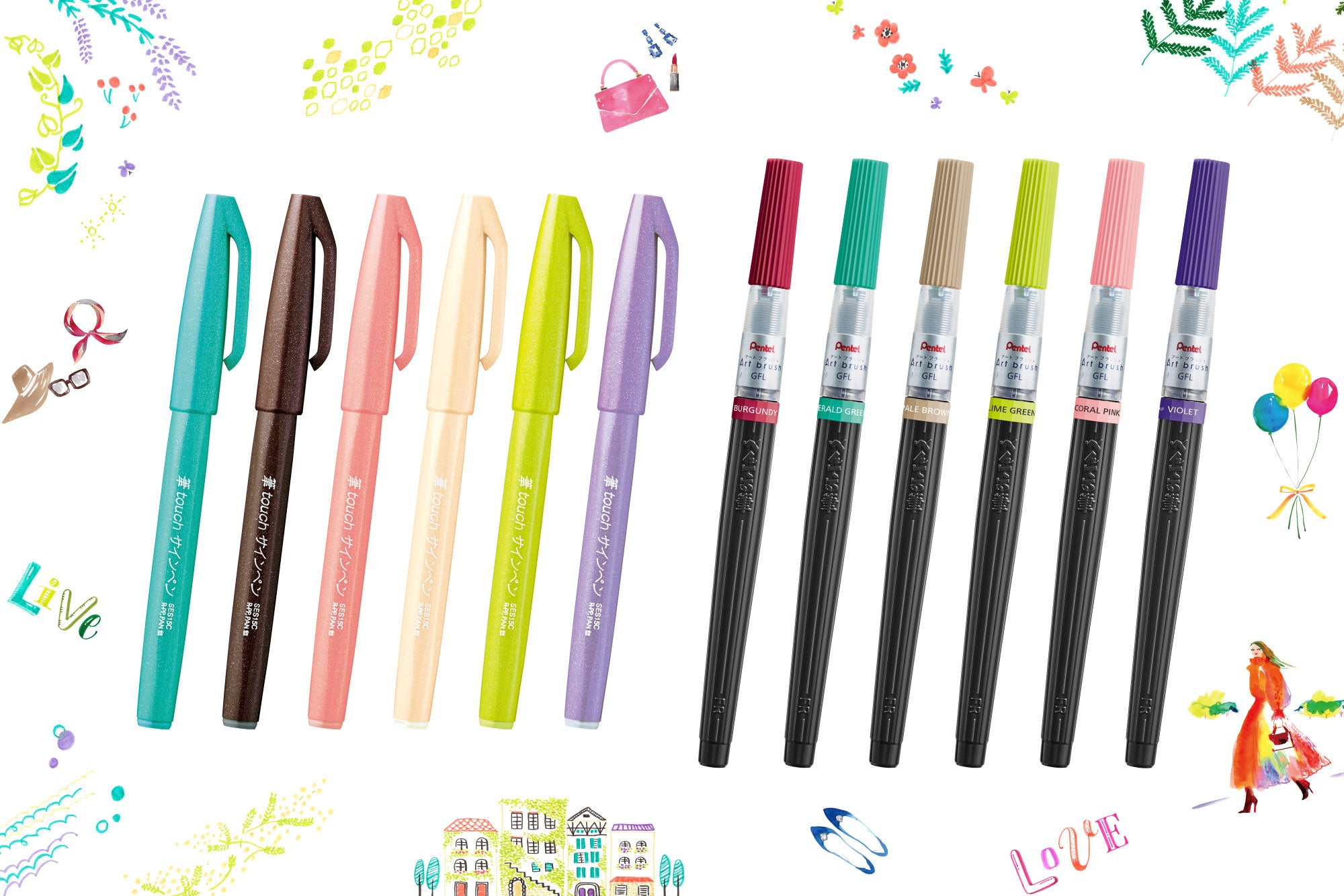 「筆タッチサインペン」には、文字にも装飾にも使いやすい、エメラルドグリーン、ダークブラウン、コーラルオレンジ、ペールオレンジ、ライムグリーン、ライトバイオレットの6色を、「アートブラッシュ」には、混色では作りにくい絶妙なニュアンスを持つバーガンディ、エメラルドグリーン、ペールブラウン、ライムグリーン、コーラルピンク、バイオレットの6色を追加します。