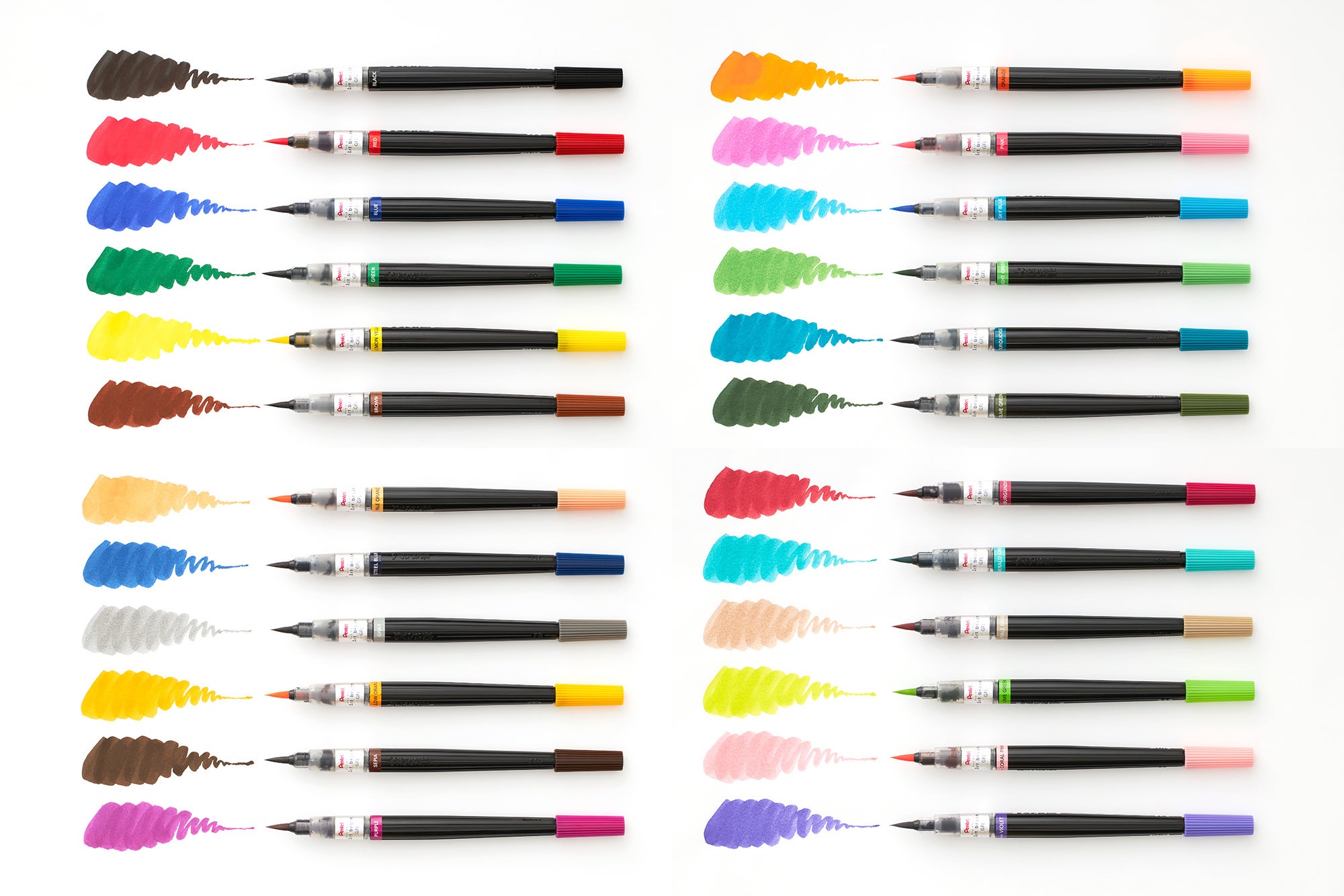 新色6色が加わり、「筆タッチサインペン」は全30色、「アートブラッシュ」は全24色展開となります。1色でも、組み合わせても、グラデーションでも、色そのものを楽しめるようこだわったバリエーションです。