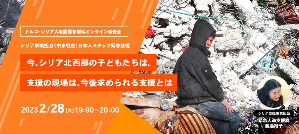 【2/28(火)トルコ・シリア大地震緊急援助オンライン報告会】シリア事業担当(中東駐在)日本人スタッフ緊急登壇。今、シリア北西部の子どもたちは、支援の現場は、今後求められる支援とは