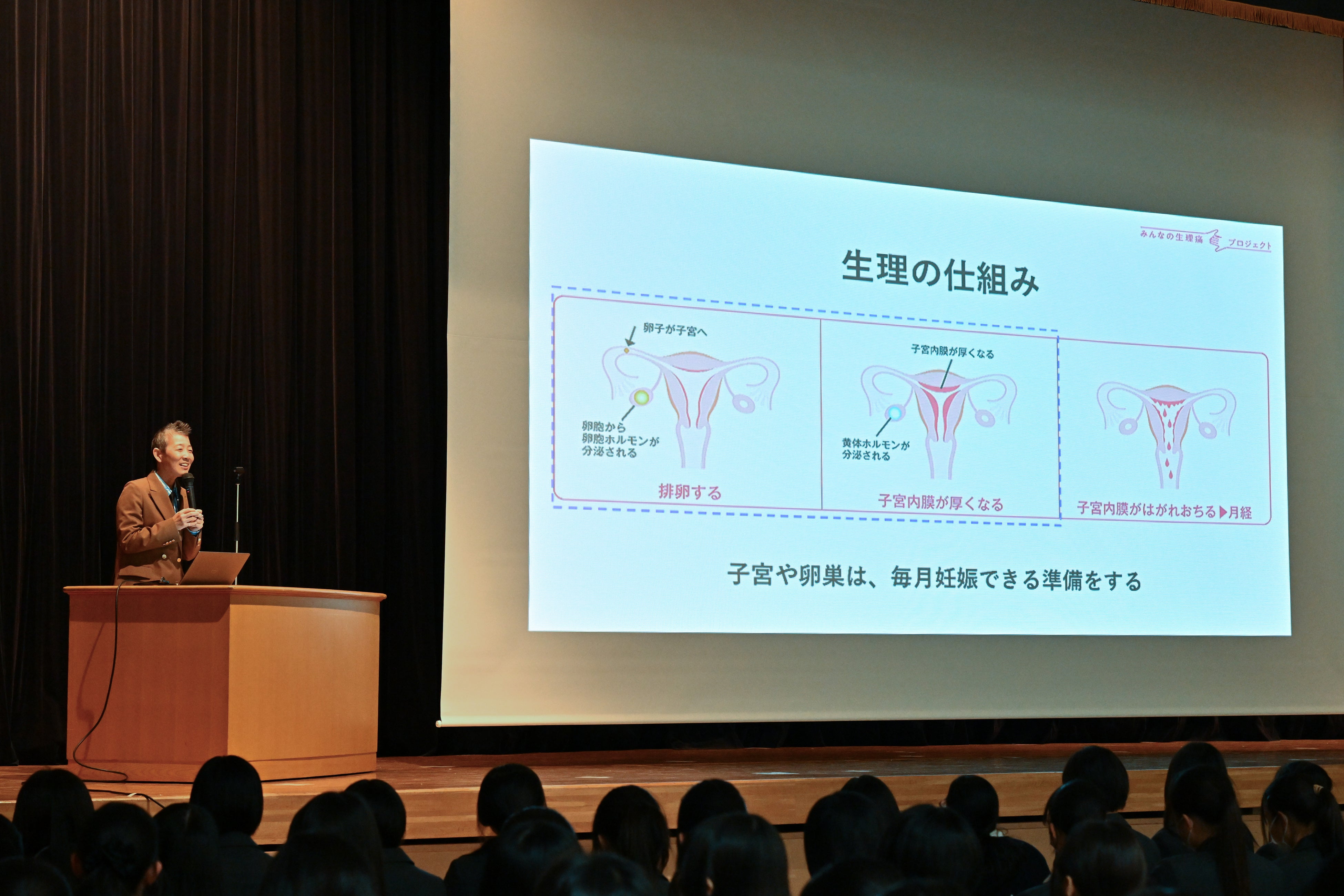 3月9日(月)、授業の趣旨に賛同いただいた鷗友学園女子中学高等学校 高校1・2年469名 を対象に、「生理・生理痛について“学び・考える授業”」を実施しました。