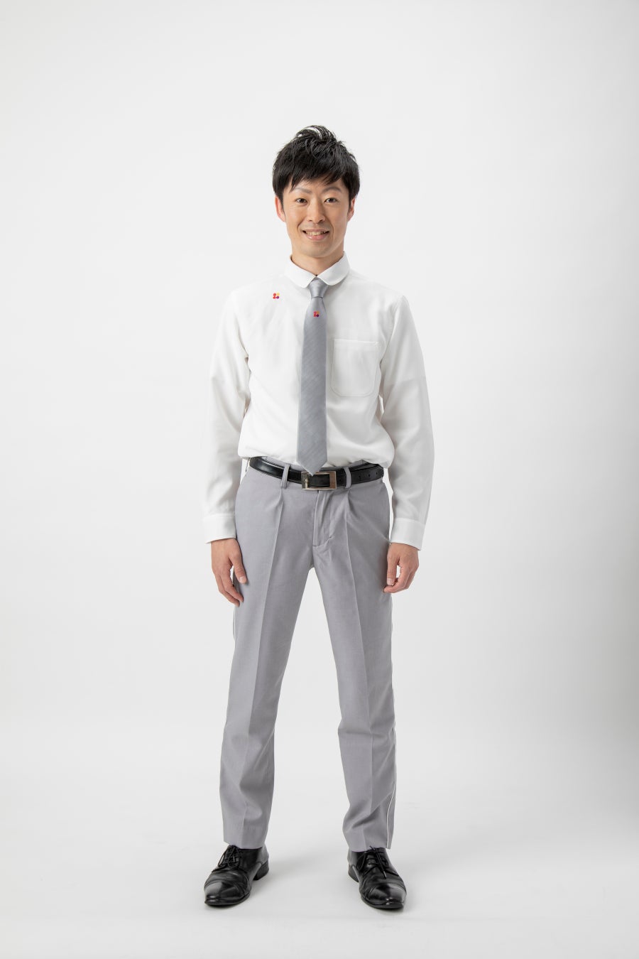 これまで男性用の制服はありませんでしたが、新たに男性用の制服も製作いたしました。シャツ、ジャケット、ネクタイなどを自由に組み合わせての着用が可能です。