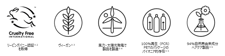 ※1 www.bcorporation.net ※2リーピングバニー認証とは、クルエルティフリー・インターナショナルによって、製品開発~製造工程で動物実験を行っていないブランドに付与される、国際的に認められている最高水準の認証です。※3 動物実験を行わず、動物由来の成分を配合していません。※4 製品の製造には、(米国の)再生可能エネルギークレジットやカーボンオフセットを通じてアヴェダの太陽電池や風力エネルギーによる電力が供給されています。更に、工場施設において、2023年末までに、ULスキームによるごみ廃棄場のシルバーゼロ ウェイスト認証を取得できるよう取り組んでいます。※5 85%以上のスキンケアおよびヘアスタイリングのPETパッケージとジャー容器は再生(PCR)PETを100%使用しています。 またアヴェダは美容業界において、100%再生(PCR)PETパッケージを採用した初めての化粧品会社です。※6 自然界由来成分とはISO16128の自然由来原料の定義に基づいたもので、成分の由来の大半が植物、非石油系ミネラルまたは水であることを意味します。また、94%はアヴェダ ヘアケア製品のアヴェダが算出したおおよその値です。